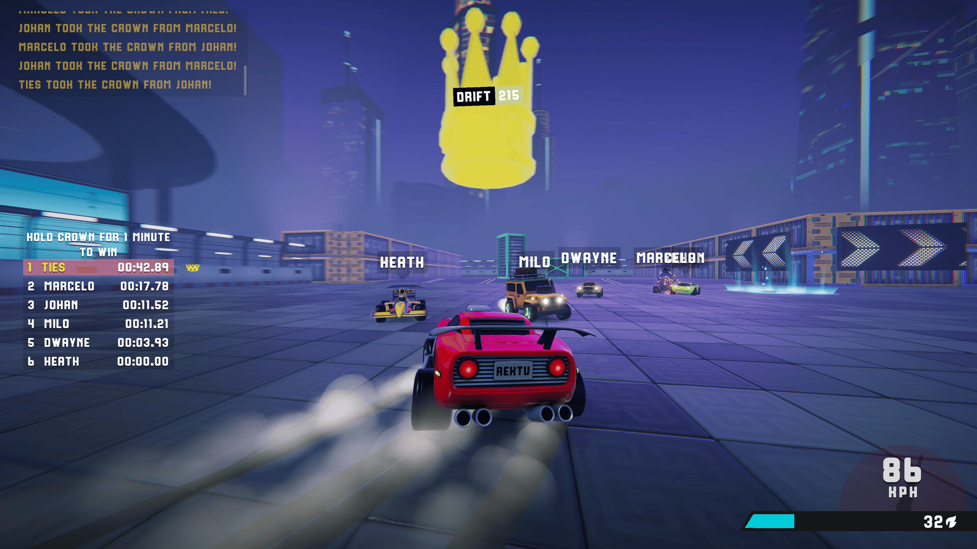 Rekt Party is an arcade stunt racing game where cars become skateboards. Flip, grind and drift through arenas filled with massive ramps, half-pipes and wall-rides! Chase highscores in single player or online co-op or join the party in tons of multiplayer game modes.