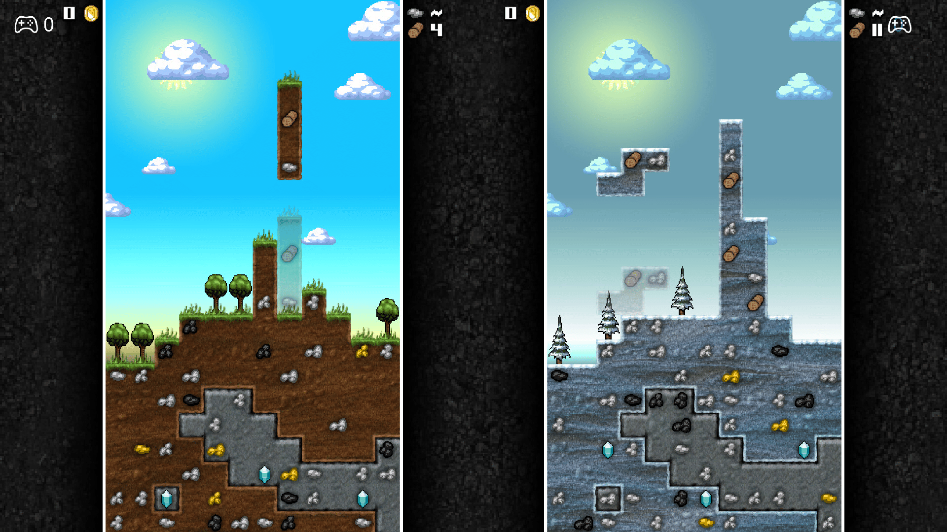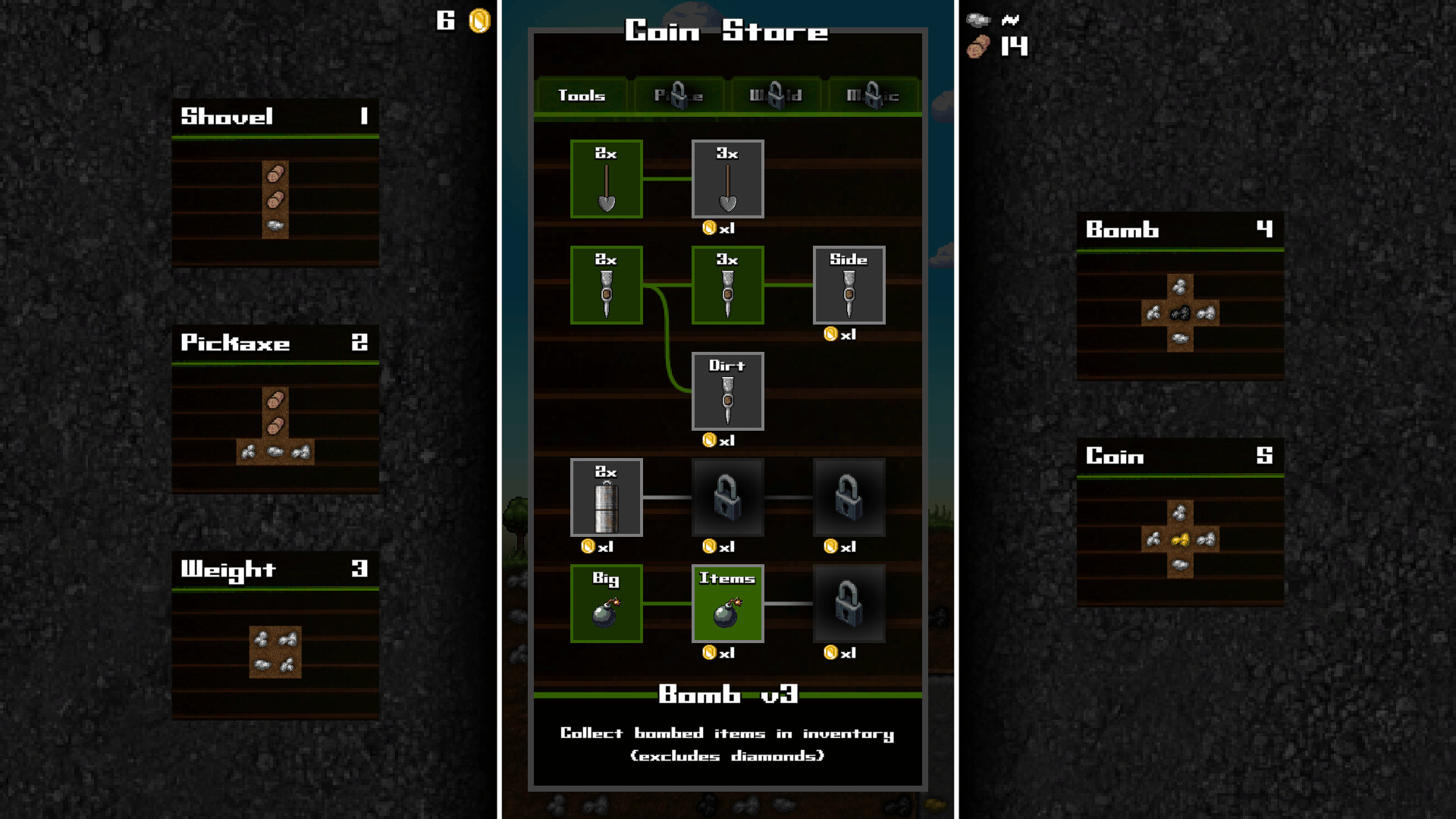 Use falling blocks to craft shovels, pickaxes, bombs and other tools to dig deeper into the mine and uncover gems to complete your quest! Craft coins to buy upgrades to tools and special abilities! Join a friend for classic PVP puzzle battles, where combos drop trash onto your opponent's playfield!