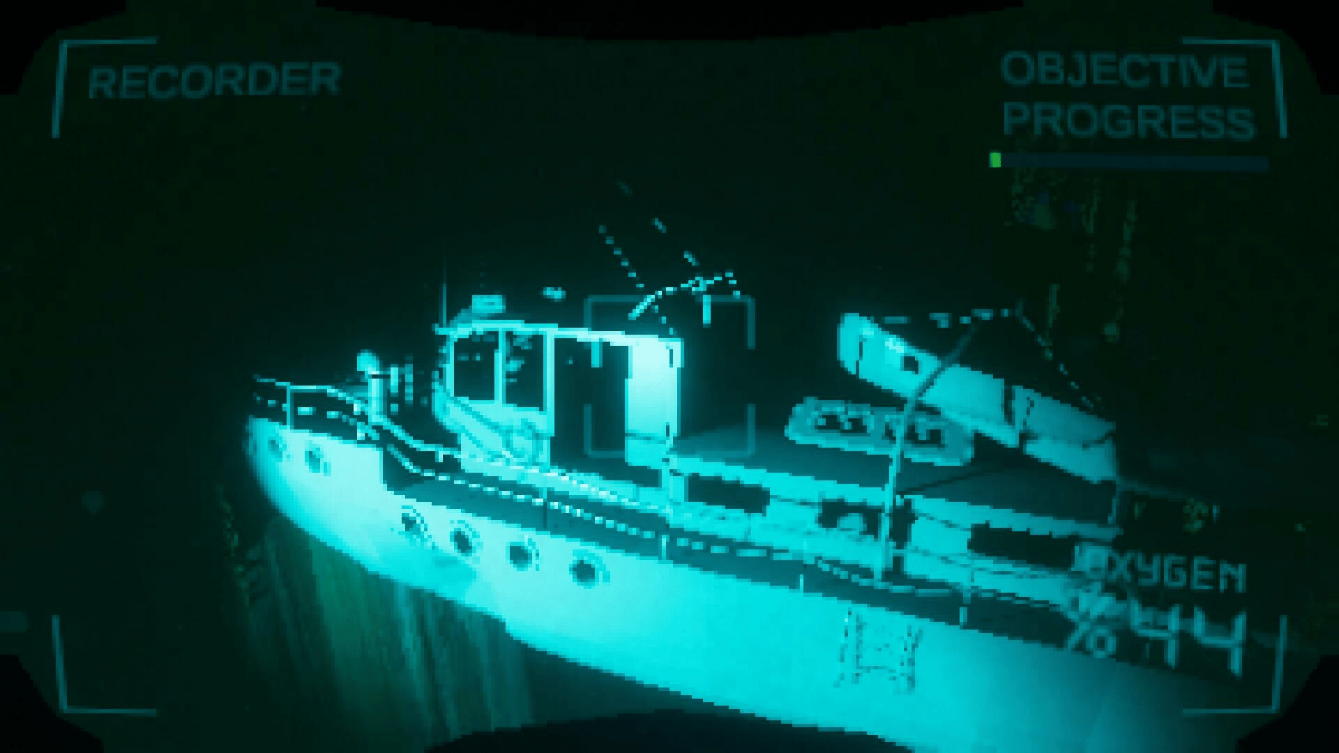 An underwater horror game where you take photos of wreckages in the deep sea. Pilot a submersible vehicle. Locate the shipwrecks with sonar. Get out of the vehicle and take photos while managing your oxygen.