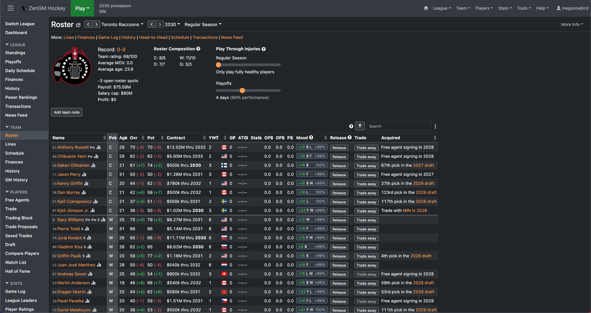 A free browser-based sports team management game where you are the general manager of an ice hockey team.