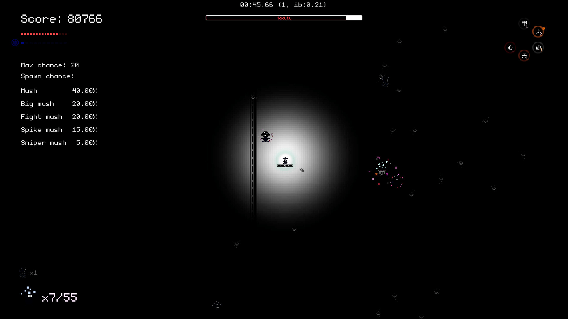 It's time to protect the world from... Mushrooms. Play as a samurai against a crowd of mushrooms, ordinary and not so. Cut, use magic, but destroy as many mushrooms as you can. Compete with others and prove who is the real mushroom destroyer!