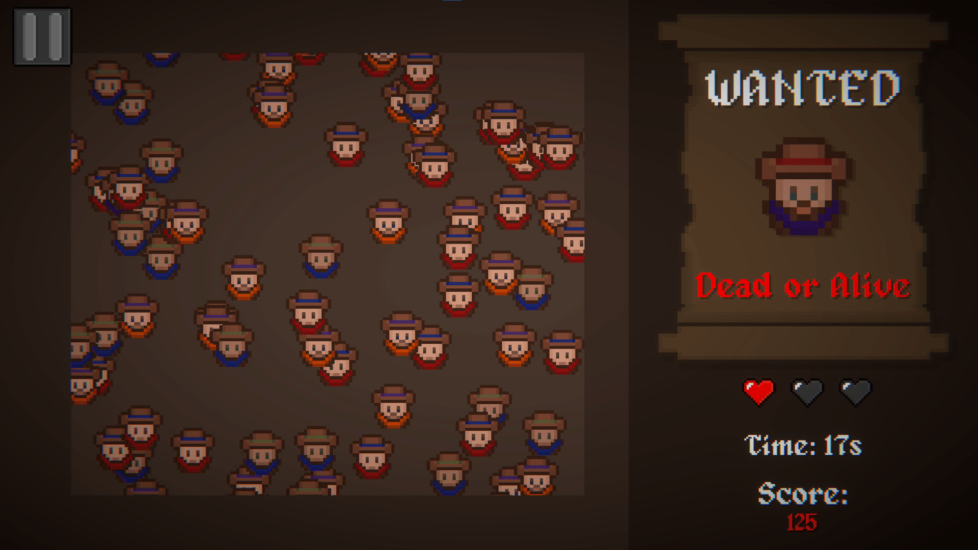Step into the Wild West with Wanted: Dead or Alive, a fast-paced puzzle game that will put your observation skills to the test. Your mission: spot the wanted outlaw among a crowd of ever-moving cowboys. As you progress, the challenge intensifies—time speeds up, and a single mistake could cost you your bounty. With its simple yet addictive gameplay, Wanted: Dead or Alive will push your reflexes and focus to the limit. Can you catch all the bandits before they vanish into the crowd?