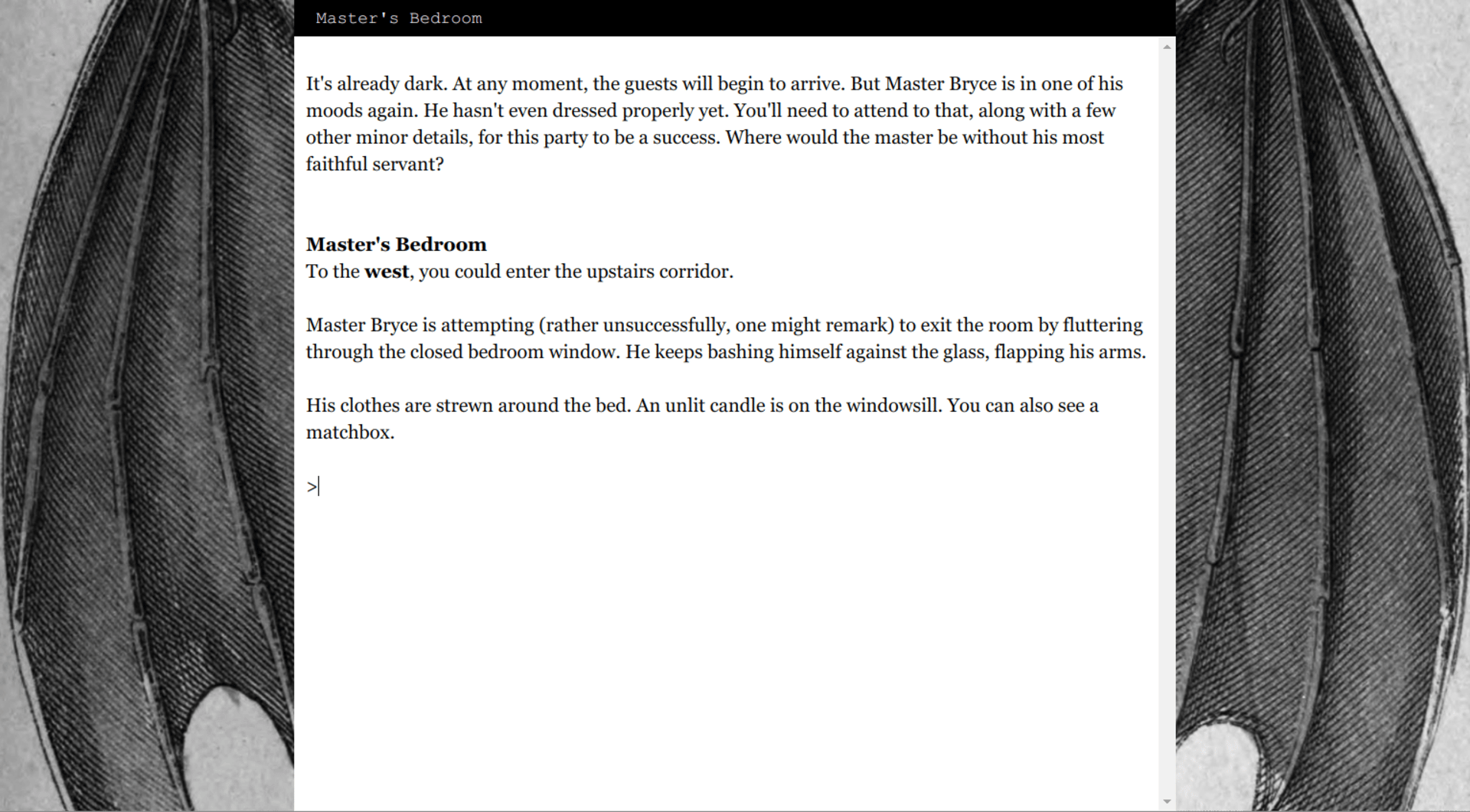 Master Bryce is throwing a party. As his most faithful servant, that means it's your job to make the party run smoothly. But you only have two hands—and far too many duties. You'll have to manage requests from the guests, the master's eccentric demands, and your own composure. All the other staff have quit, unwilling to entertain the master's "moods," but you've served Wyatt Manor for decades; what's one more evening? A comedy of errors, mild frustrations, and major workplace-safety violations. With limited actions and a limited inventory, juggle hors d'oeuvres, flaming curtains, and radioactive elements—and keep the drinks coming!