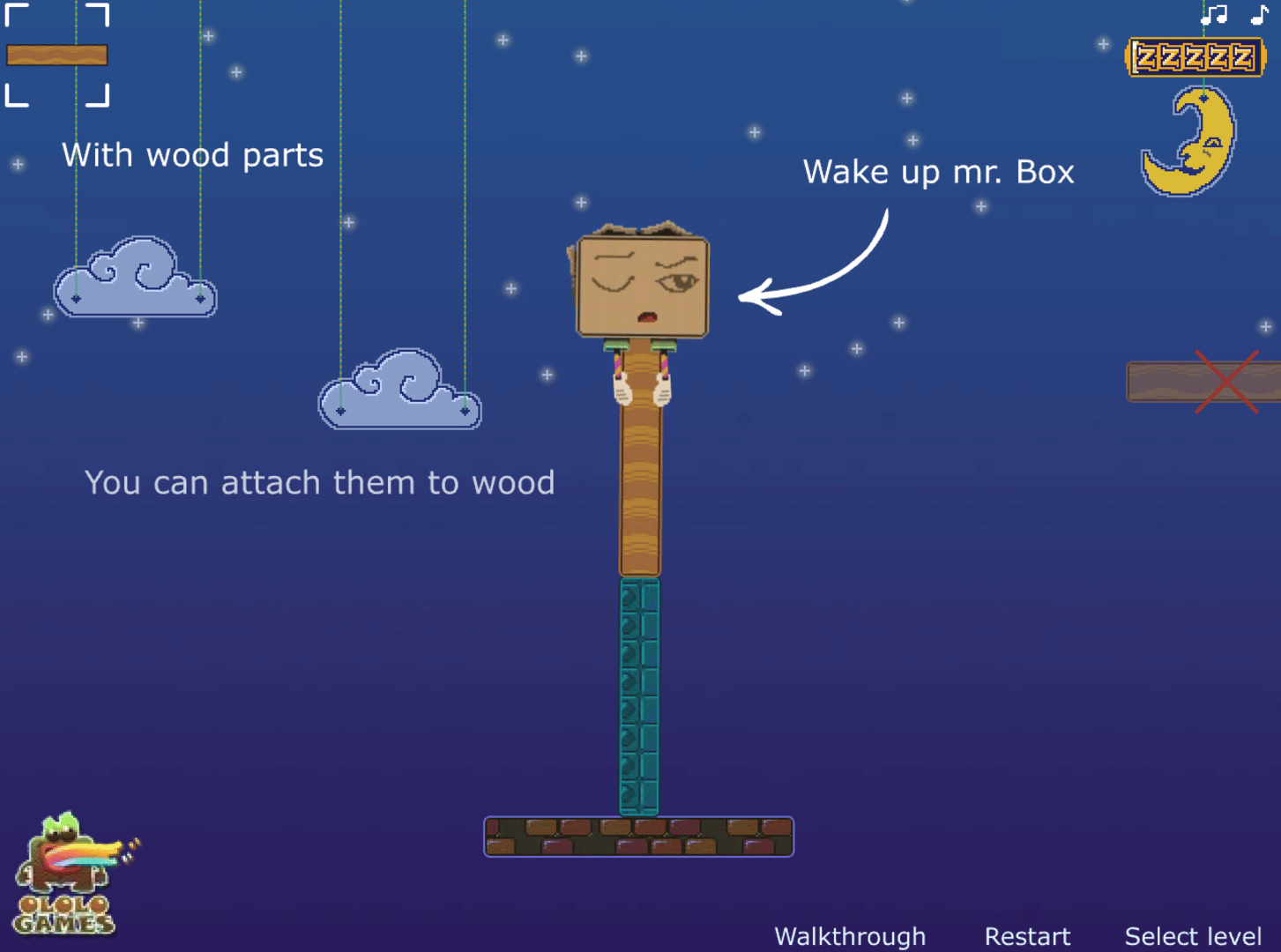 Mr. Box sleeps too much. Wake him up in this physic based puzzle game.