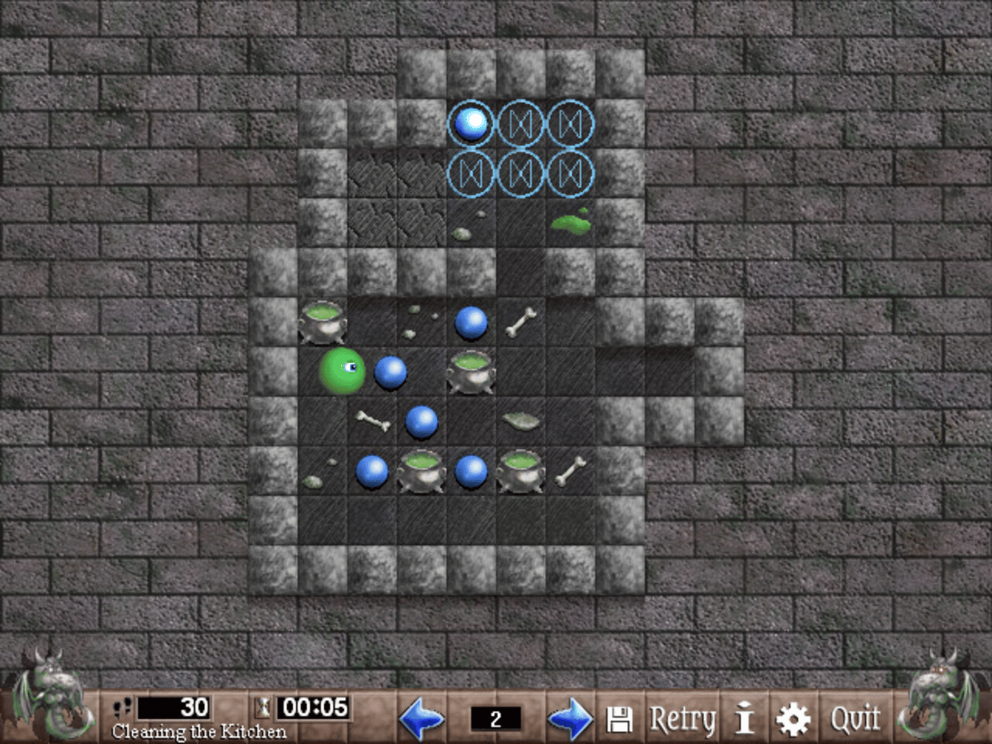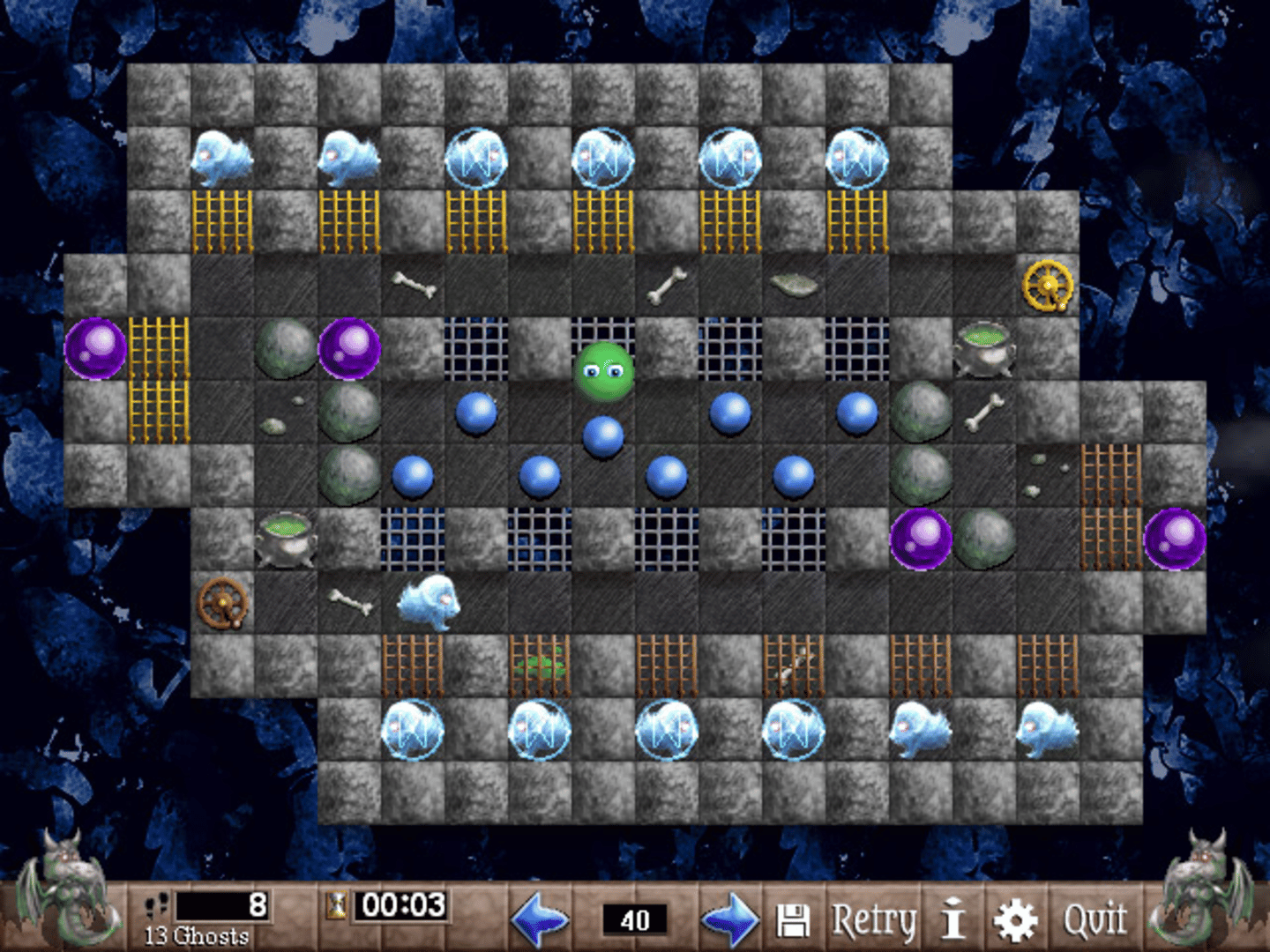 Help Ardos push all the soulstones onto rune circles in this puzzle game based on the classic Sokoban, but watch out: as in the popular classic, stones can only be pushed and not pulled, so try to avoid unwinnable situations that would surely spell doom as you uncover the right sequence of moves. Open gates, avoid roaming ghosts, and when all challenges are mastered, use the Level Creator to create your own for more fun!