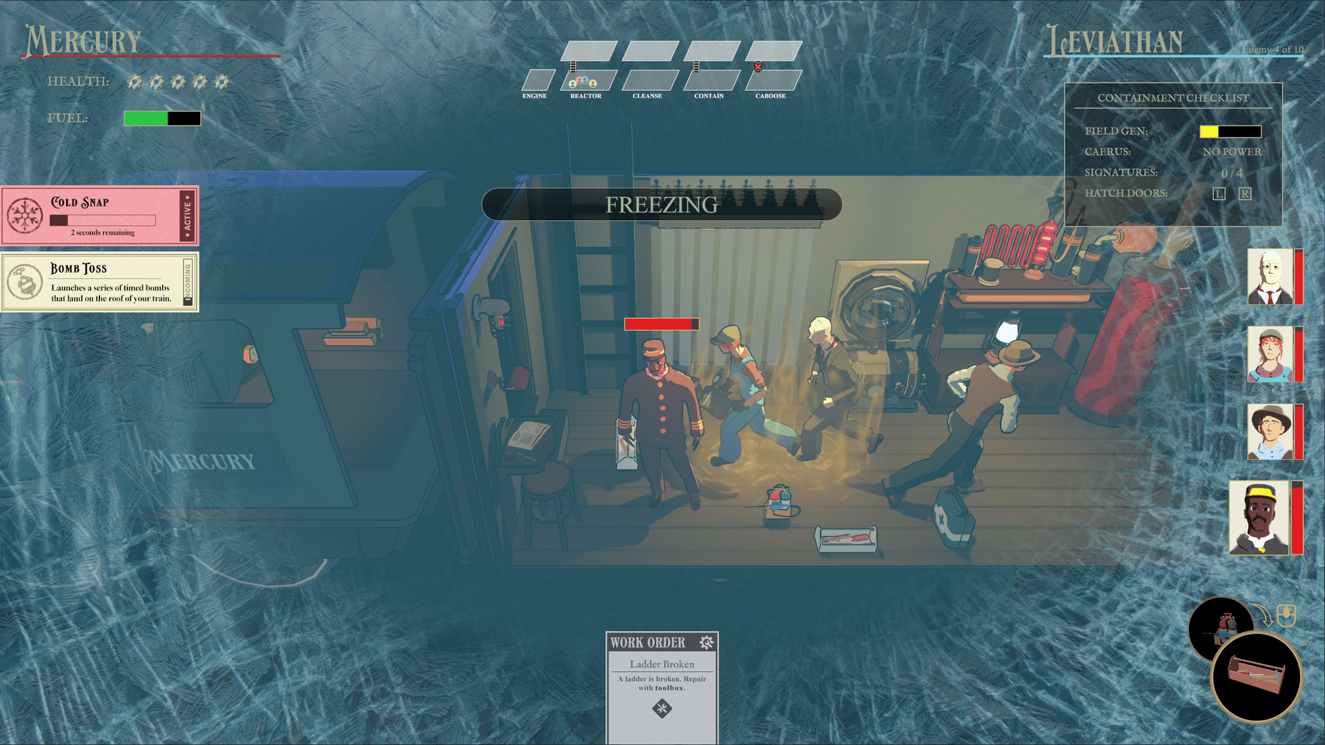 Rhyolite is a 1-4 player co-op action roguelike set on a steampunk locomotive being attacked by ghost trains. Defend, repair, and upgrade your train as you search the railway for a portal to the spirit world.