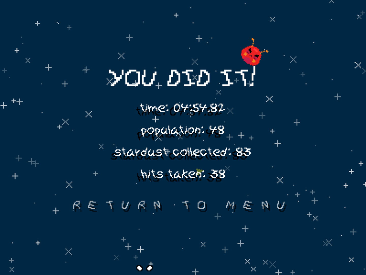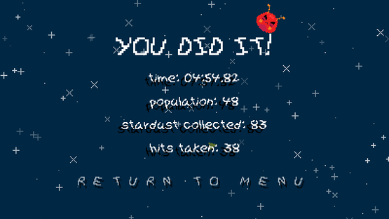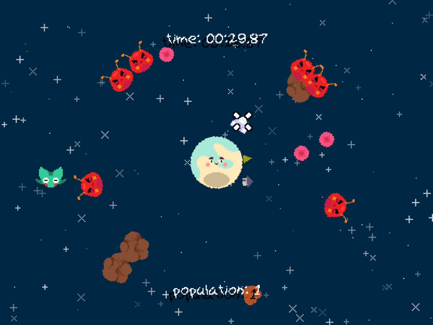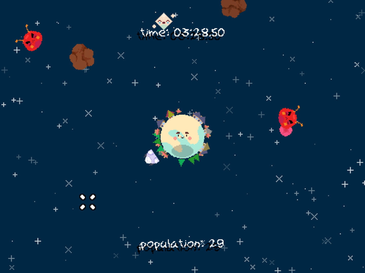 A game created with Nathan Ranney, Max Cordeiro and Mike LeRoy for Ludum Dare #34. Use your space ship's mighty space gun to blast away incoming asteroids, and evil aliens! But be careful! You do not want to shoot the happy Stardust that wants to come land on your planet! The Stardust makes your population grow! Pull the Stardust in as fast as possible and get the high score!