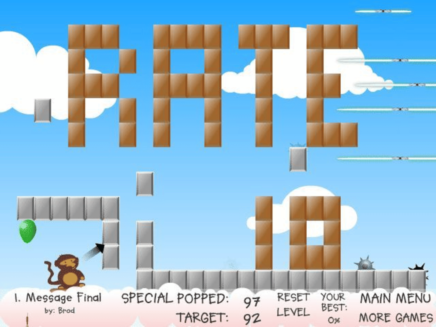 Bloons is a strategy game in which players throw darts at a series of floating balloons in an effort to pop them all. Players are given a limited amount of darts and must pop a certain amount of balloons to progress to the next level.