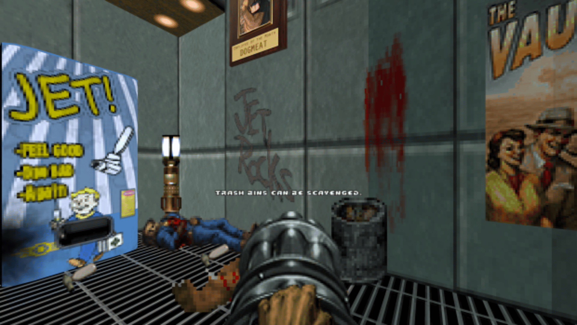 "War. War never changes. And neither does- THE DOOM DWELLER- you were chosen by THE OVERSEER to enter VAULT 666 and locate THE WATER CHIP. If you fail, your home, your friends, and your PET BUNNY will perish. Traveling the Wasteland, your investigations lead you to a CAVE ENTRANCE. But what's this? No vault dwellers in sight, but more mutants than you can shake a boomstick at! It stinks like rotten meat! So, pump that POWER FIST, rev that RIPPER, and unload your 10MM, right into the face of HELL! Welcome to VAULT 666! Death in the Vault is about to change!"
