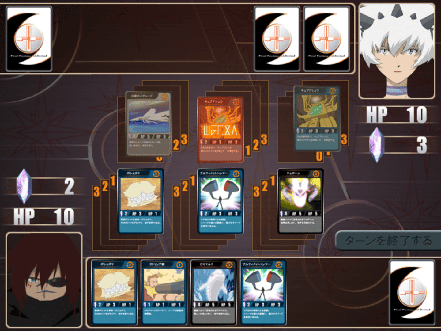 FF:U on PC is a visual novel based on the Final Fantasy: Unlimited anime. Choose from several dialogue options as you progress the story; the ending changes depending on your choices. The game also features card-based gameplay during moments of combat.