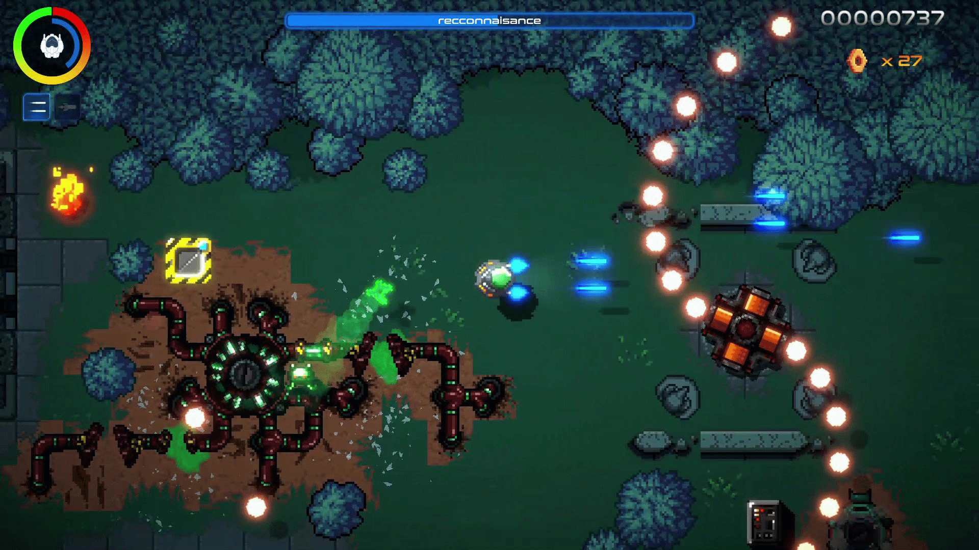 An intense shoot-em-up + roguelite fusion. Pilot your fighter to destroy the defences of procedurally-generated space titans, then land, infiltrate and plunder the depths with your droid. Spend your bounty on epic upgrades & explore the moon base hub to interact with characters & unlock secrets.