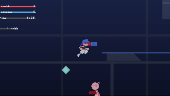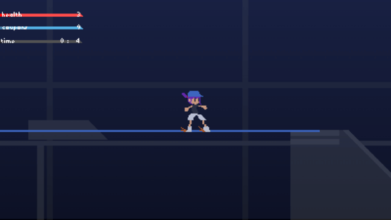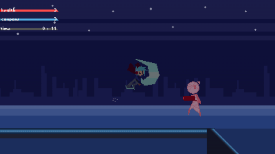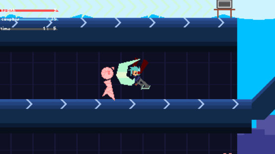 A simple 2D platformer about keeping your speed as much as possible. Use your parries to hit off walls and foes to traverse each stage's obstacles with style! Get familiar with each stage to shrink your time lower and lower 'till you reach the highest rank you can!