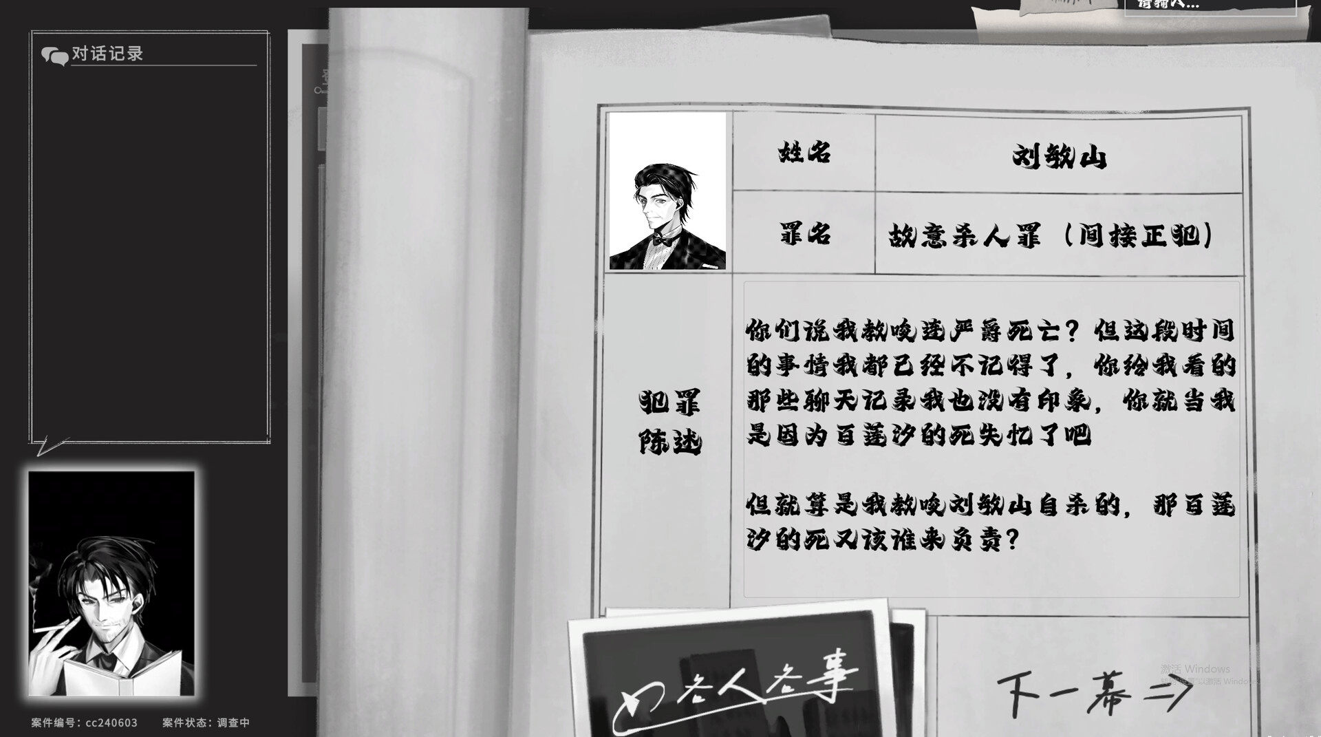 Speak of My Sin is a word reasoning game - players are supposed to find the truth of the cases, restore the story in a number of interrelated cases and finally detect the identification of “me”, speaking out “my” sin.