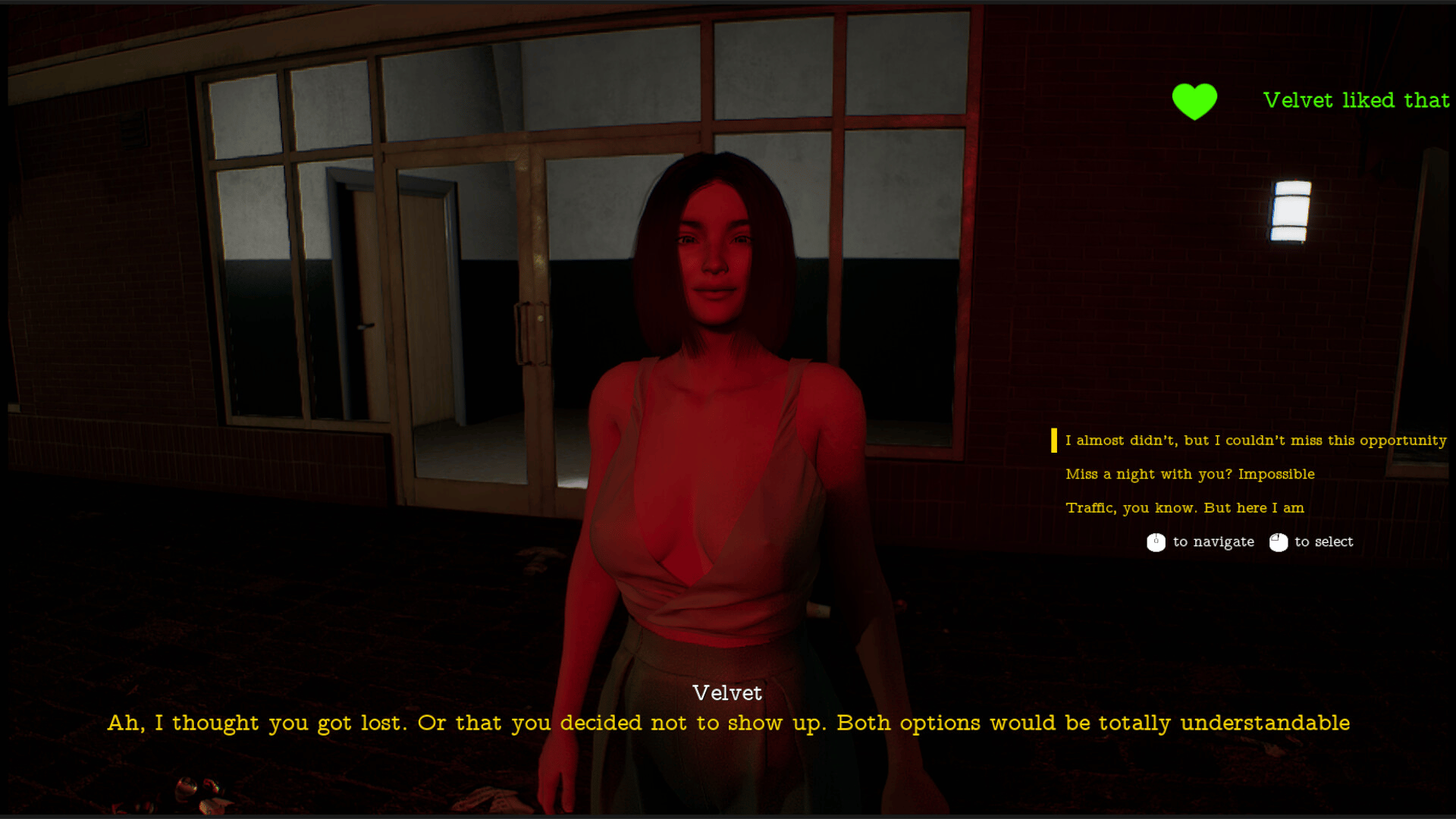 An adult narrative game combining meaningful choices and real-time action, set in an intriguing contemporary nighttime setting.