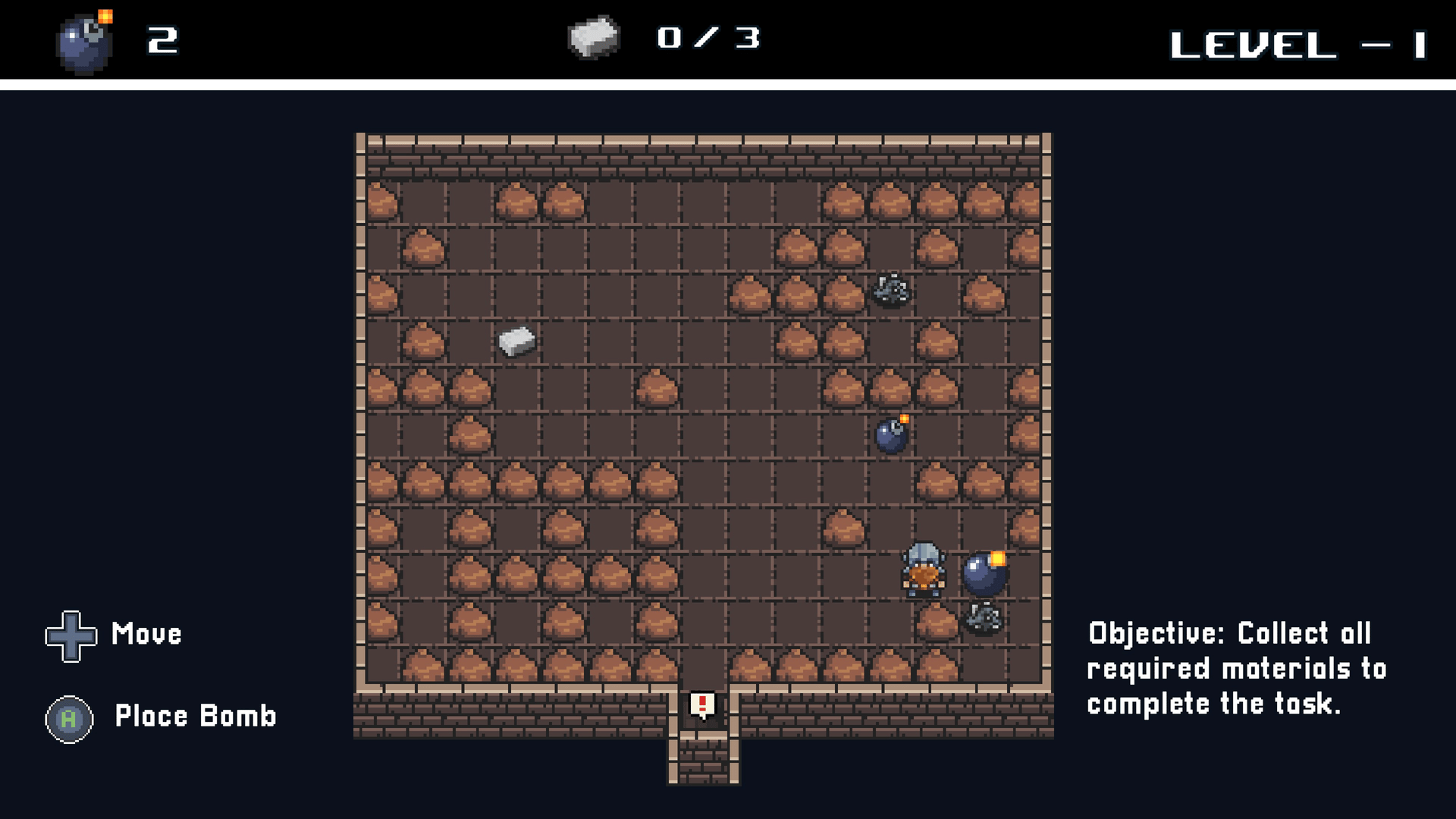 Grimdur Stoneheart is an ex-adventurer dwarf, now the manager of the greatest forge on Bramblegate. Stories about a new mine full of ore started to circulate on the city and Grimdur himself decided to explore the mine, using only his trusty bombs to clear the path. Can the dwarf find the legendary ore to create the Ultime Weapon?