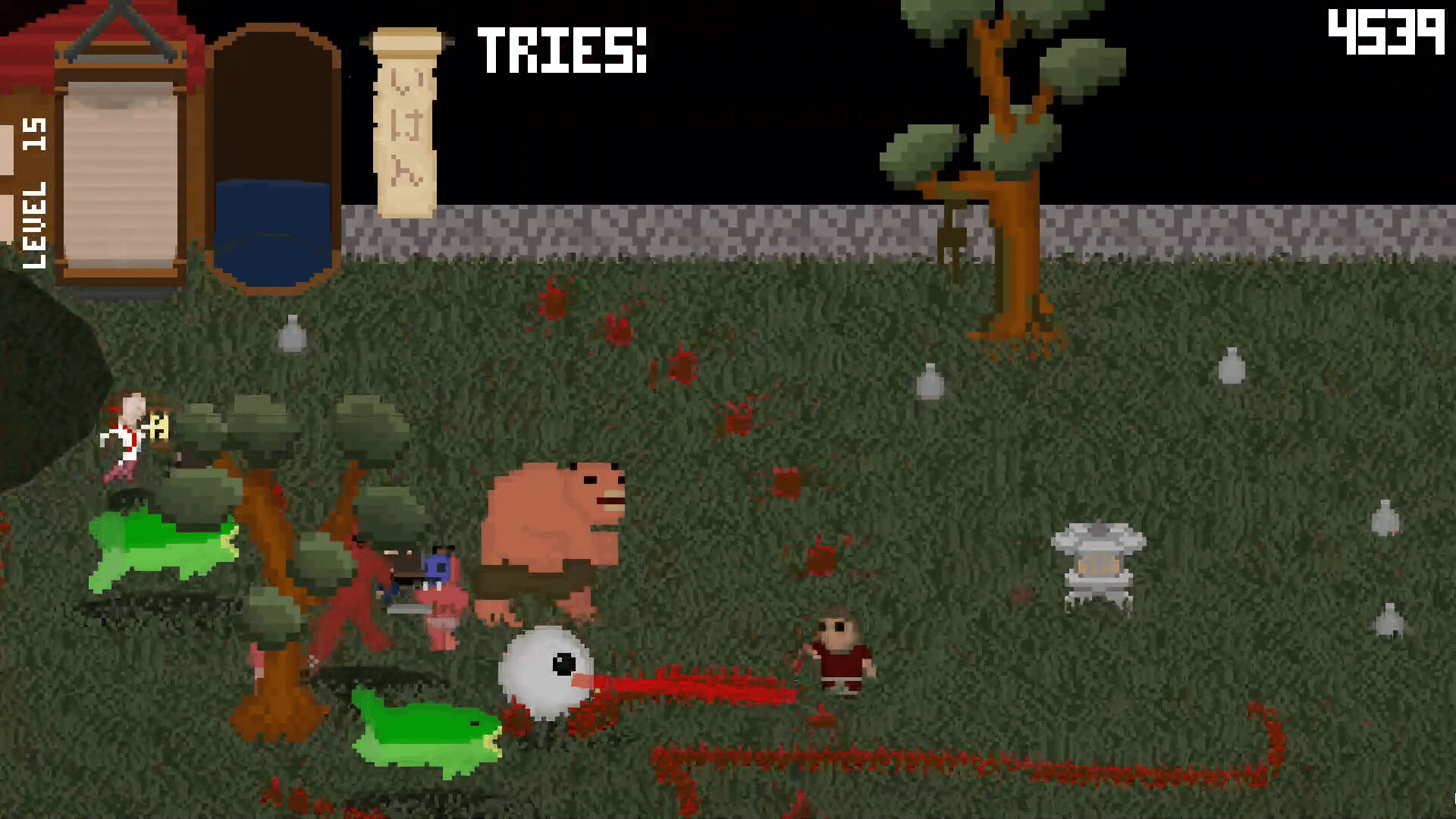 Up to four player retro arcade style twin-stick shooter featuring a colorful cast of monsters inspired by Japanese folklore.