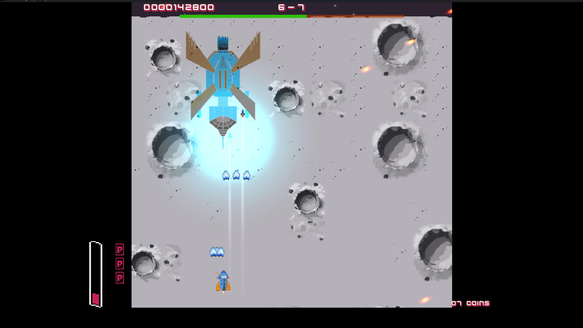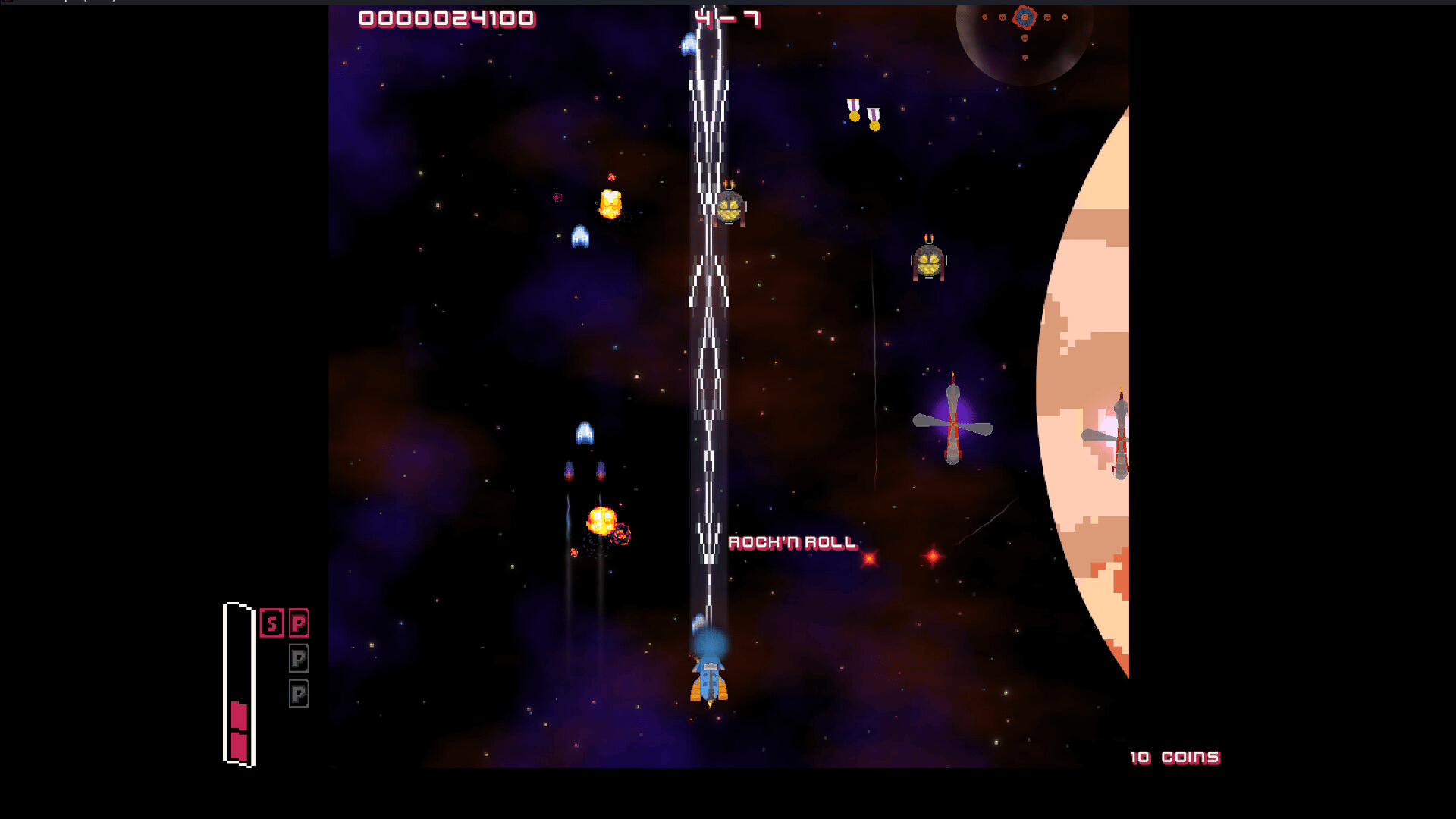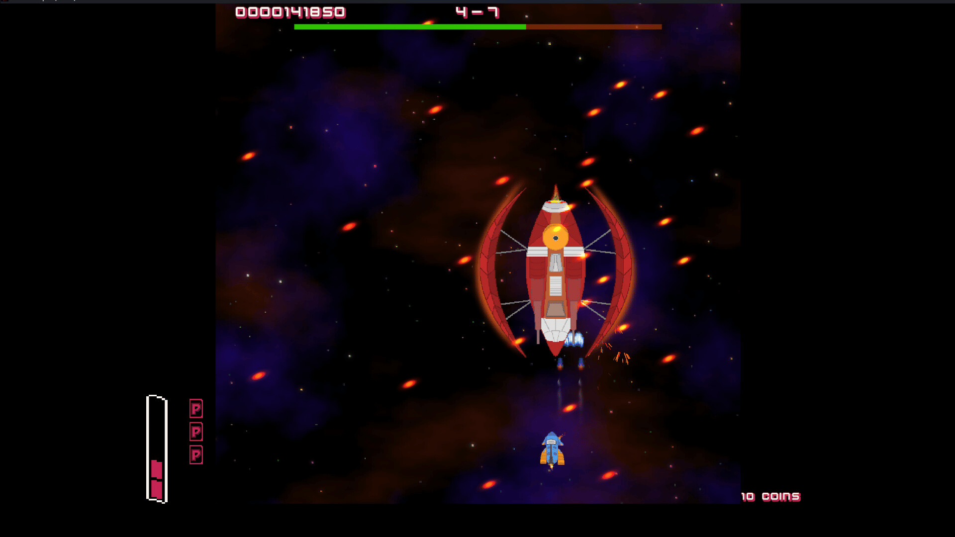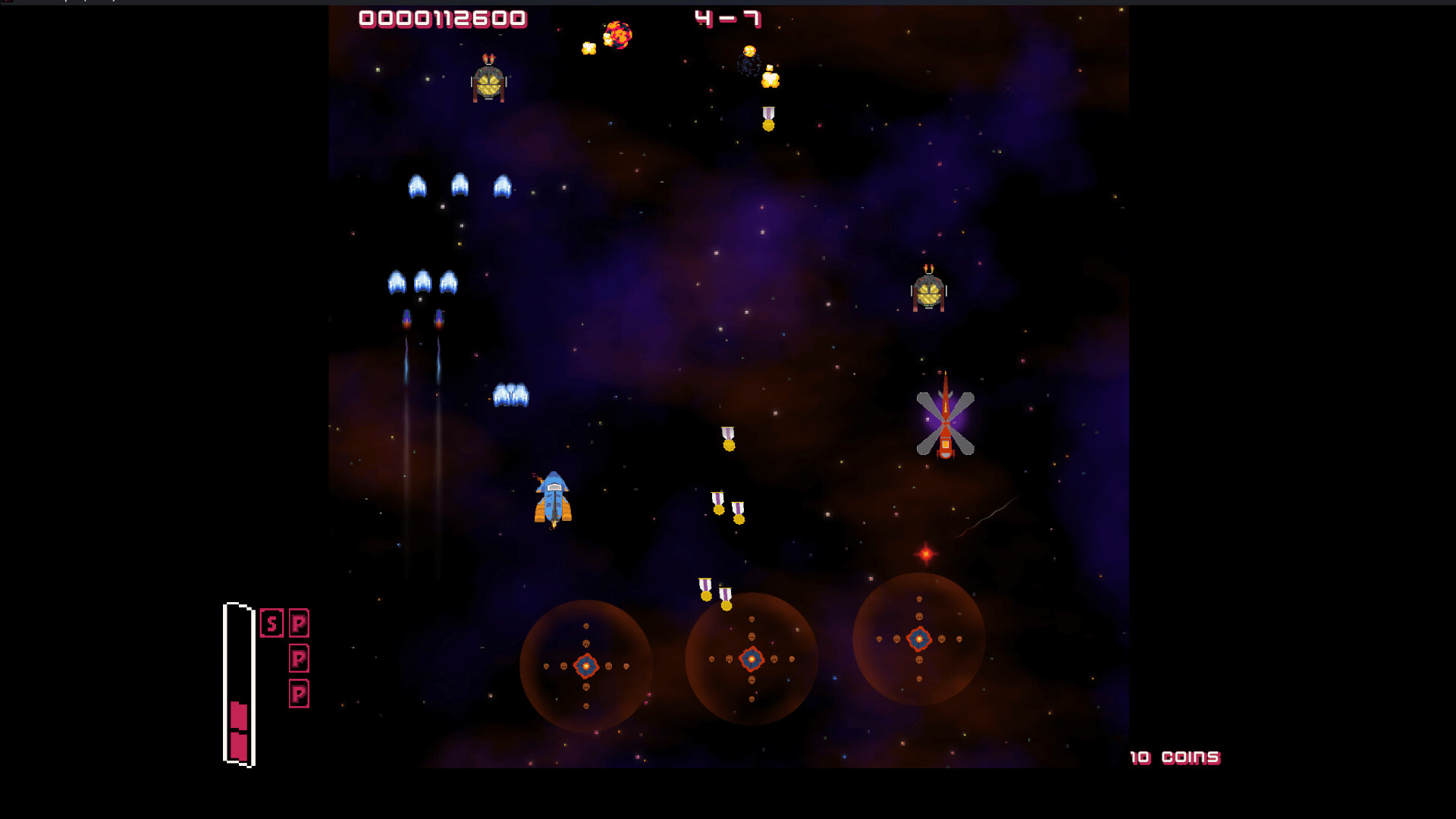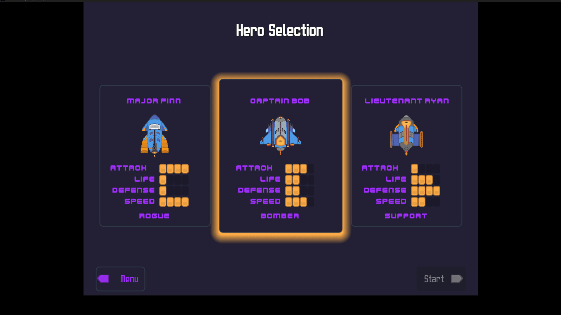 Defender's Squad is a sci-fi vertical scrolling shooter 2D that combines 7 different levels. Play Solo and pick one of the 3 ships to kill enemies and save the earth from aliens.
