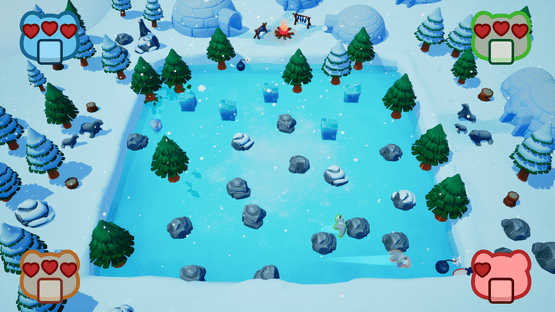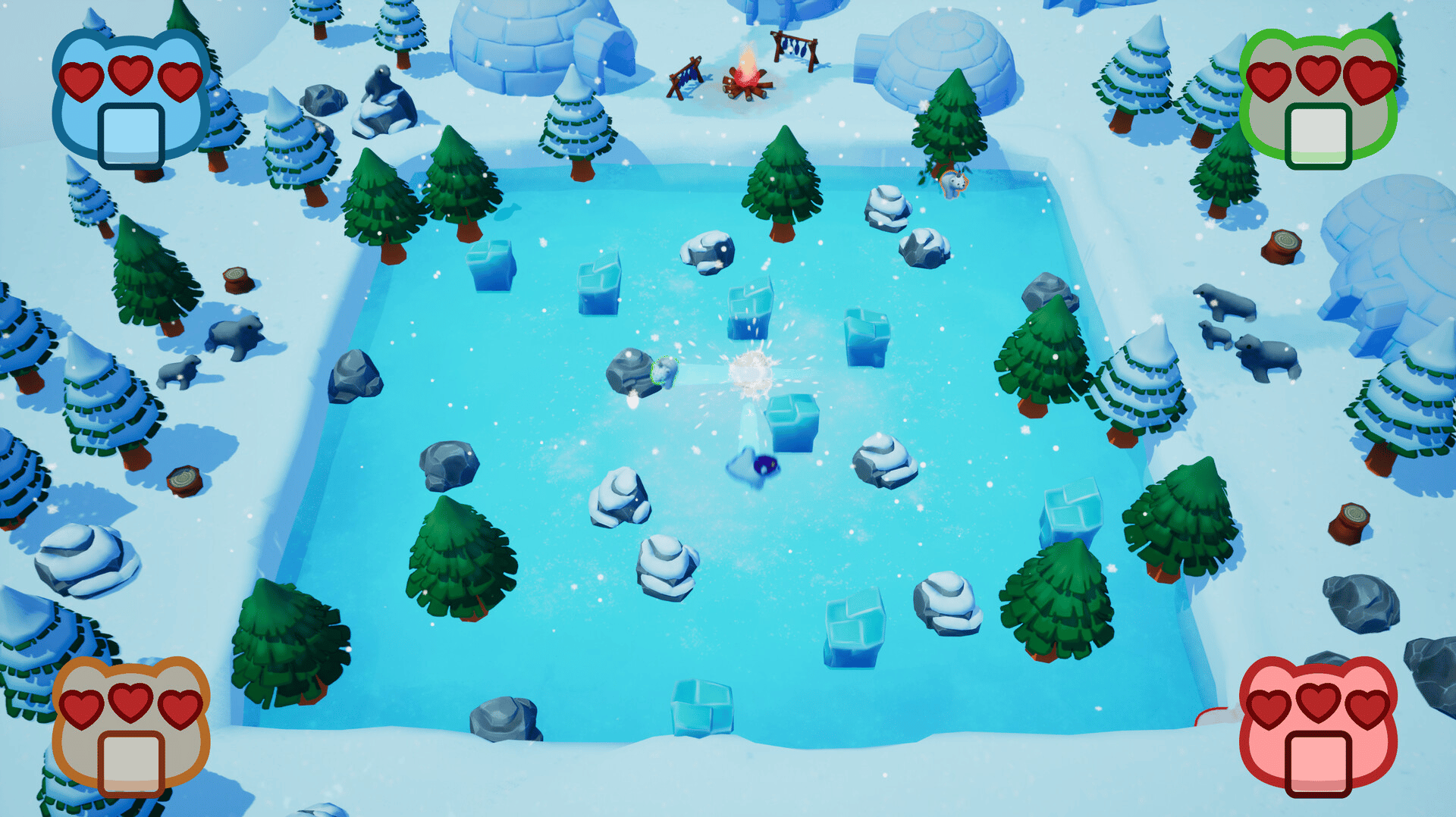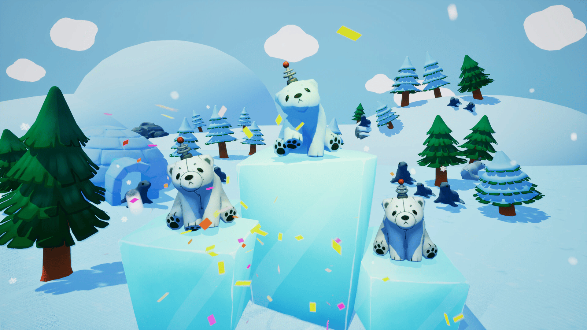 Slide alone or with friends! The polar bear cubs have come out to play and they have decided to have fun on the ice with a single objective in mind: be the last one standing! Use item boxes to counter your foes' victory and be the winner!