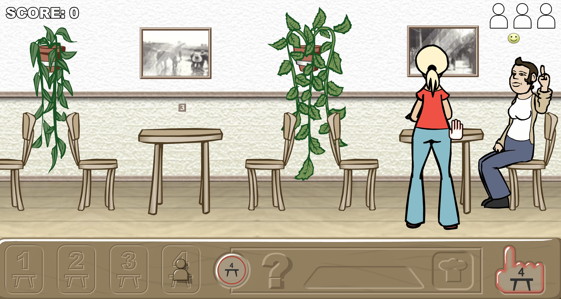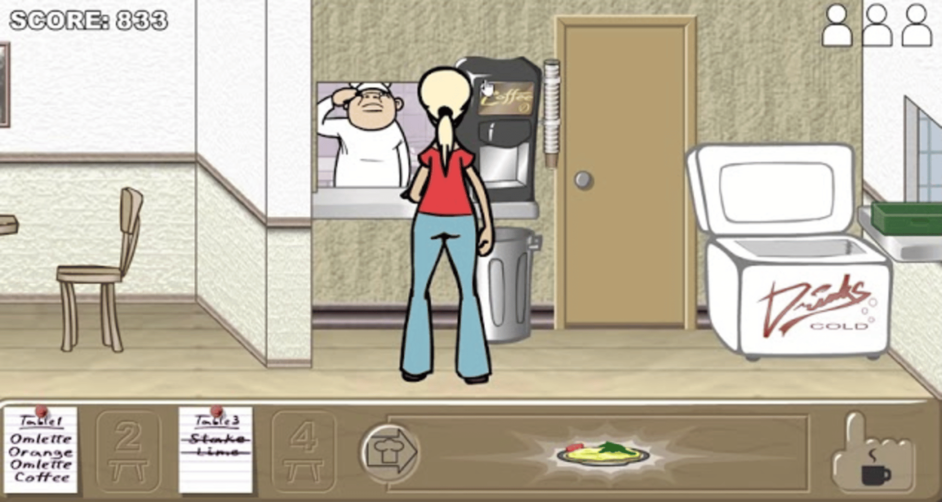 You are a waitress and your job is to serve the client! Try to take orders as quickly as possible! Don't forget to clean the tables!