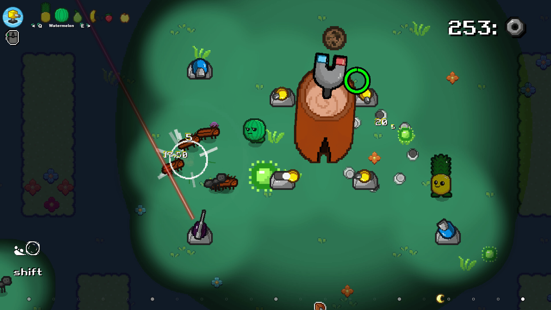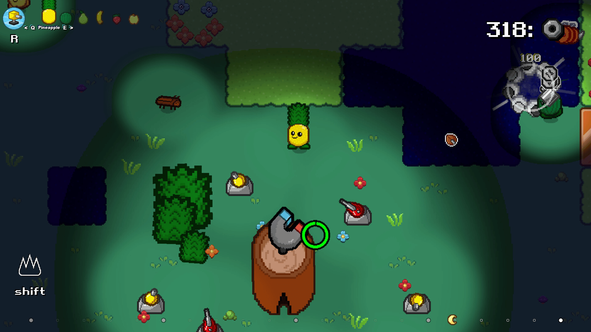 Syntropia is a Tower Defense game where you use fruits with different skills to gather resources during the day, but be careful! You have limited time, because at night, creatures will appear to destroy your tower! Use scrap to build turrets to defend your precious home!