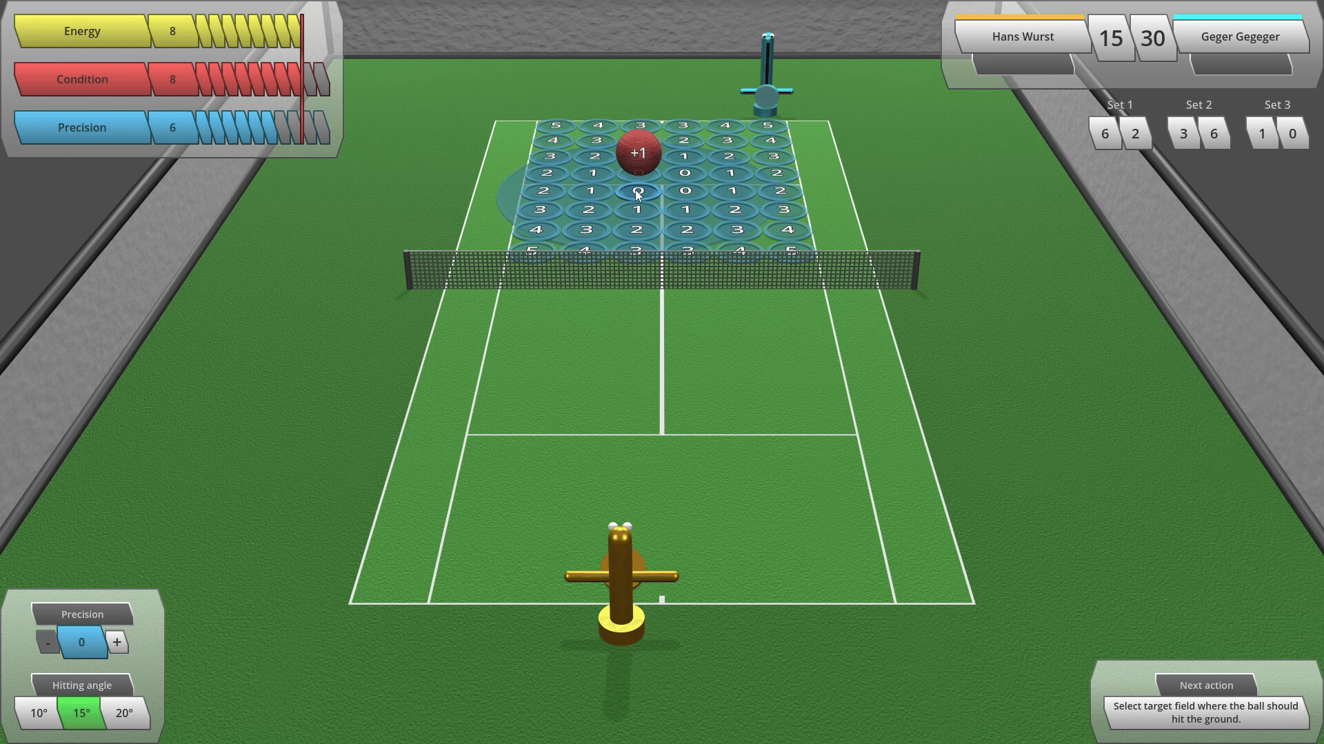 In this turn-based, tactical tennis simulation you build, control and improve your own tennis robot. Play on grass, clay and hard courts and balance your energy, precision and condition throughout the match. Maintain and develop your robot between matches.