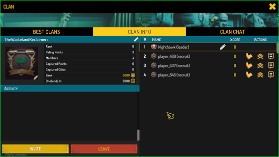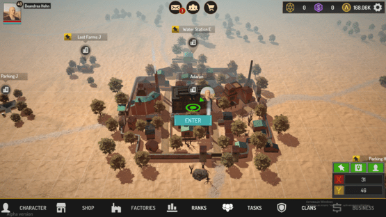 Skies is a post-apocalyptic tactical RPG with user-driven economics and tokenomics where you can mine resources , craft goods, launch and rule your business, create a clan, fight for the desert and cities and much more. There is a World map in the center of Skies with such options as Character, Factories (list of factories - filtered by the distance from the character's location), Clans, NFT market, Business (My factories, Rented locations).