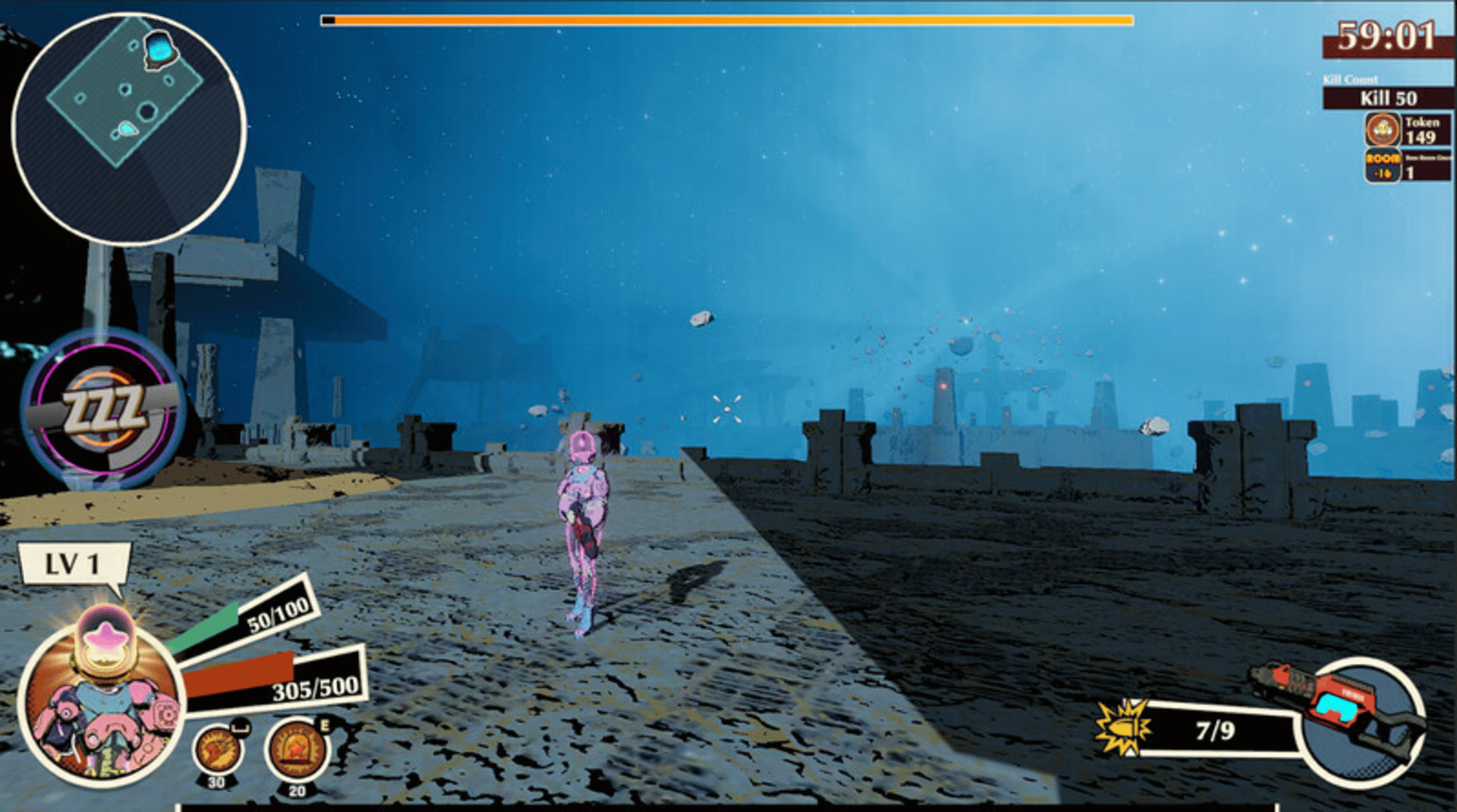 After centuries of invincibility, it became popular for humans to watch live alien hunting shows, participate in alien hunts, save up money, equipment, and use all the loot you find to move on to new maps and defeat more powerful enemies.