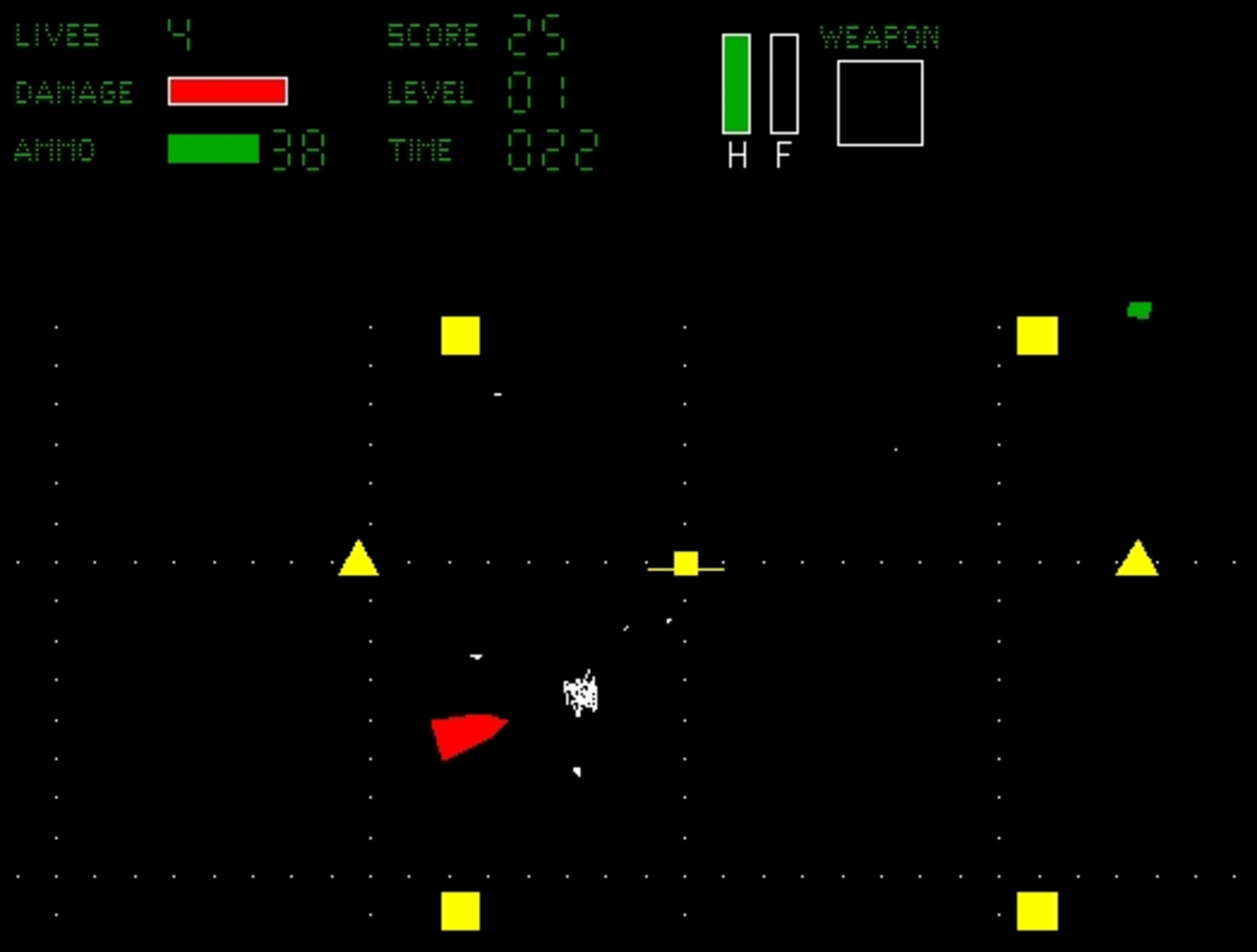 Spectre VR is a frag-fest that pays homage to the arcade classic Battlezone. This is the second sequel to Spectre, following Spectre Supreme. New features include texture-mapped graphics and the (limited) ability to fly.