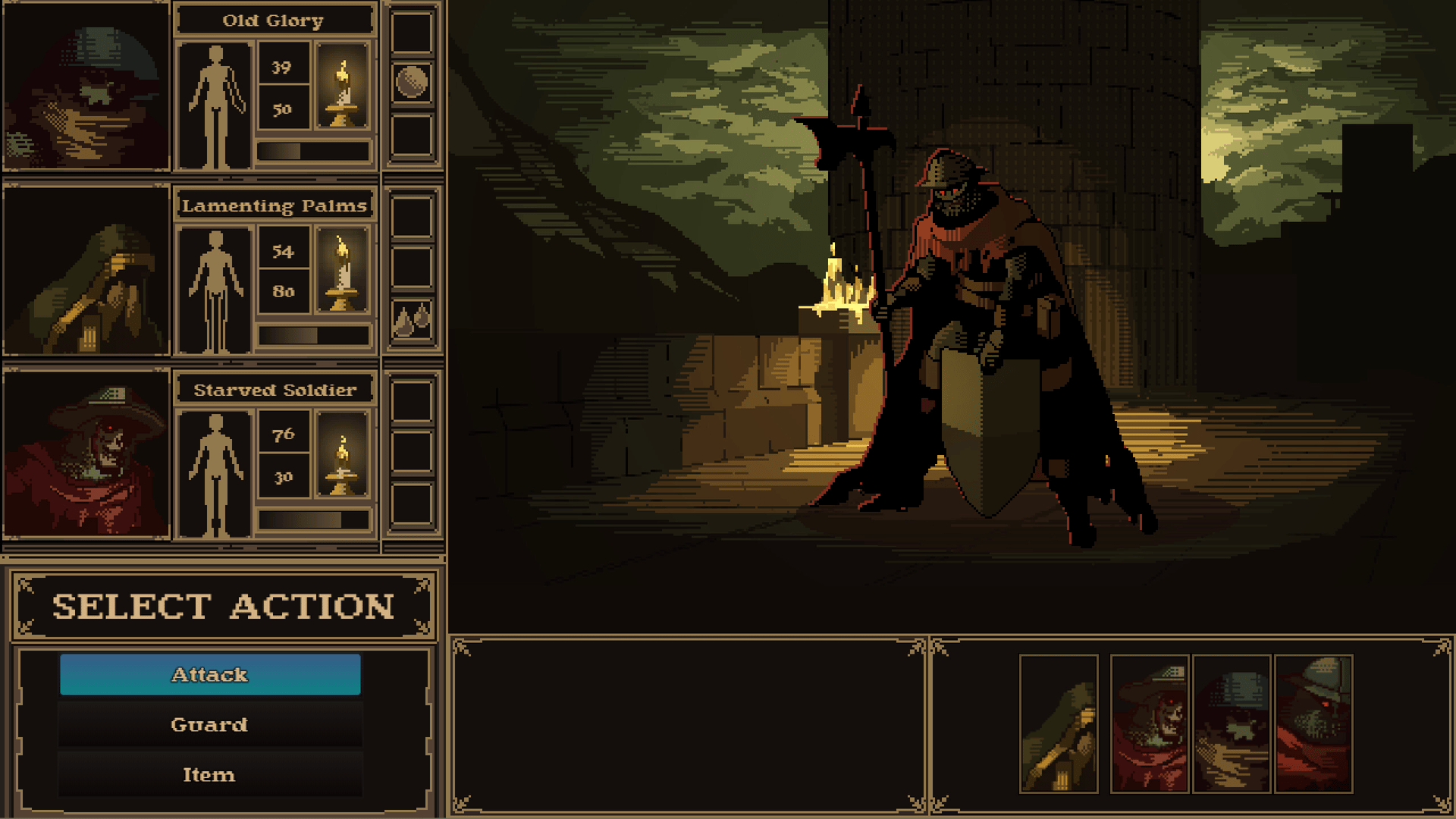 End the Endless is a dark fantasy turn based RPG set in the Purgatorial Realms. Harness unique directional based weapon systems in an oppressive environment. Utilize blades, sanity, limbs and even your party members as a resource. Explore the Afterlife and seek to conquer the Seven Terraces.