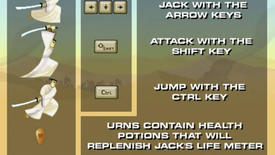 Samurai Jack in Desert Quest was a Macromedia Shockwave Toonami game that was available to play on cartoonnetwork.com beginning in 2002. However, the game did not appear on toonami.com until 2004. The game is no longer available at cartoonnetwork.com, but has been archived by fans.