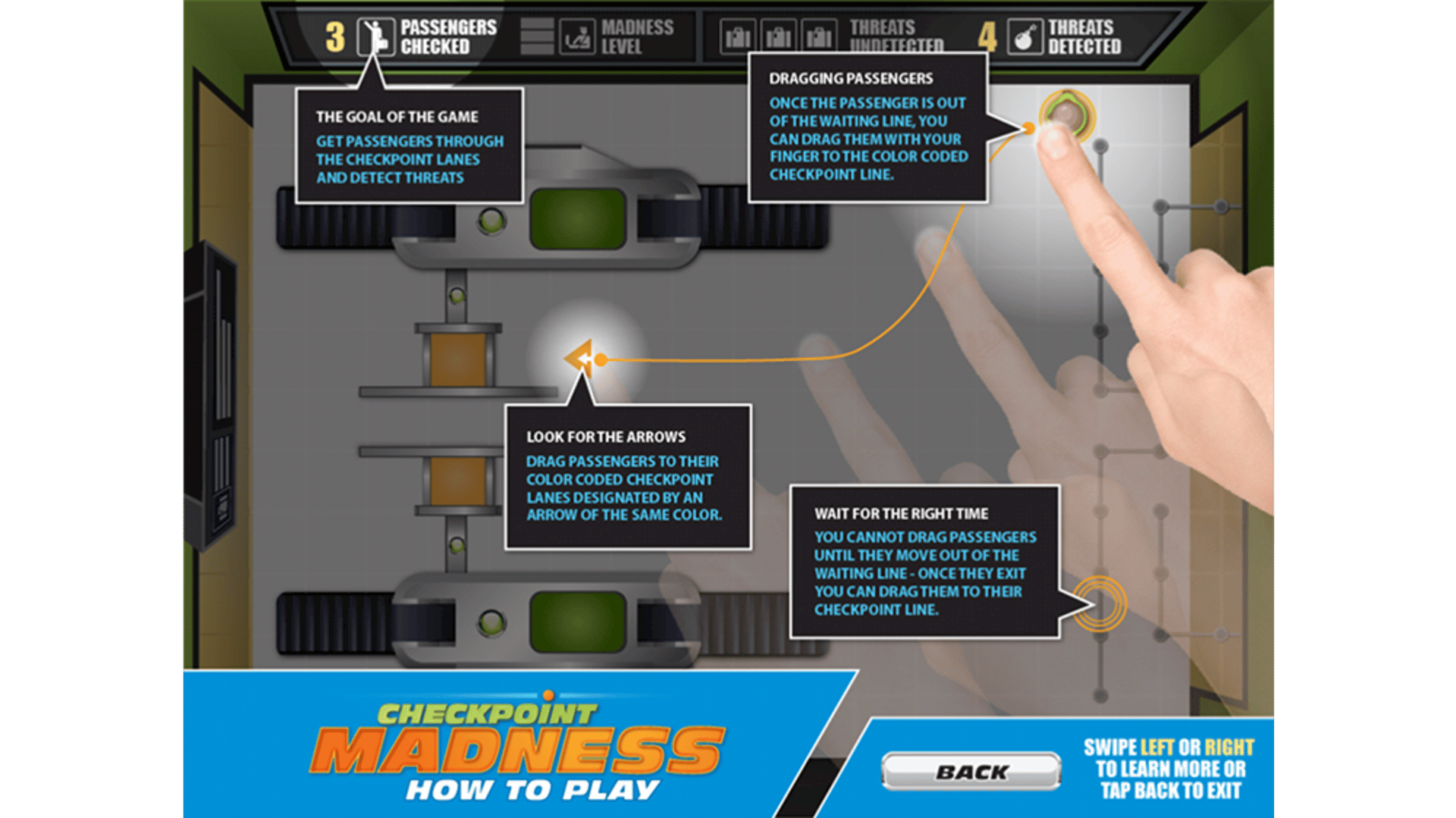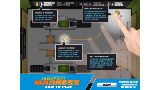 Checkpoint Madness is a game where you manage a security checkpoint, guiding passengers through various screening processes while monitoring their safety and detecting potential threats. Your tasks include directing passengers through different screening stations, overseeing baggage checks, and responding to security alerts.