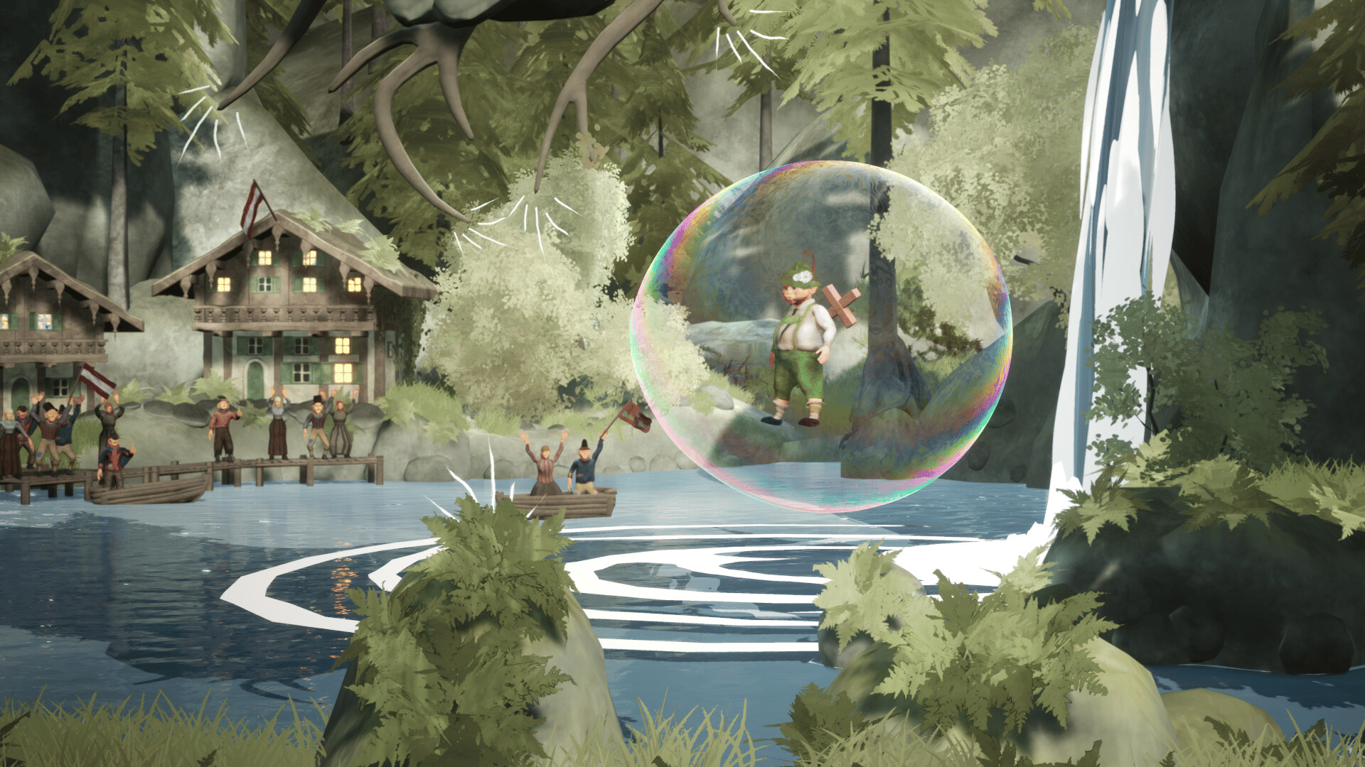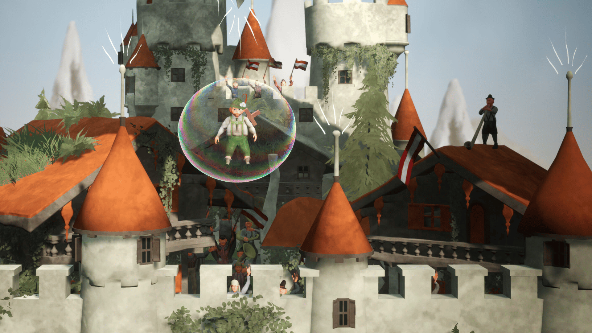 Help Bubble Boy reach the highest mountaintop in the Alps by moving him upwards inside his giant soap bubble, but don't let the bubble pop, or you will fall, all the way, back down...