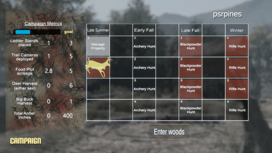 Deer Hunting Camp allows you to create your own private deer habitat which can be traded with friends! Once done creating, managing, and scouting your property you will be challenged with early fall bow hunting, late fall black powder hunting, and winter rifle hunting.