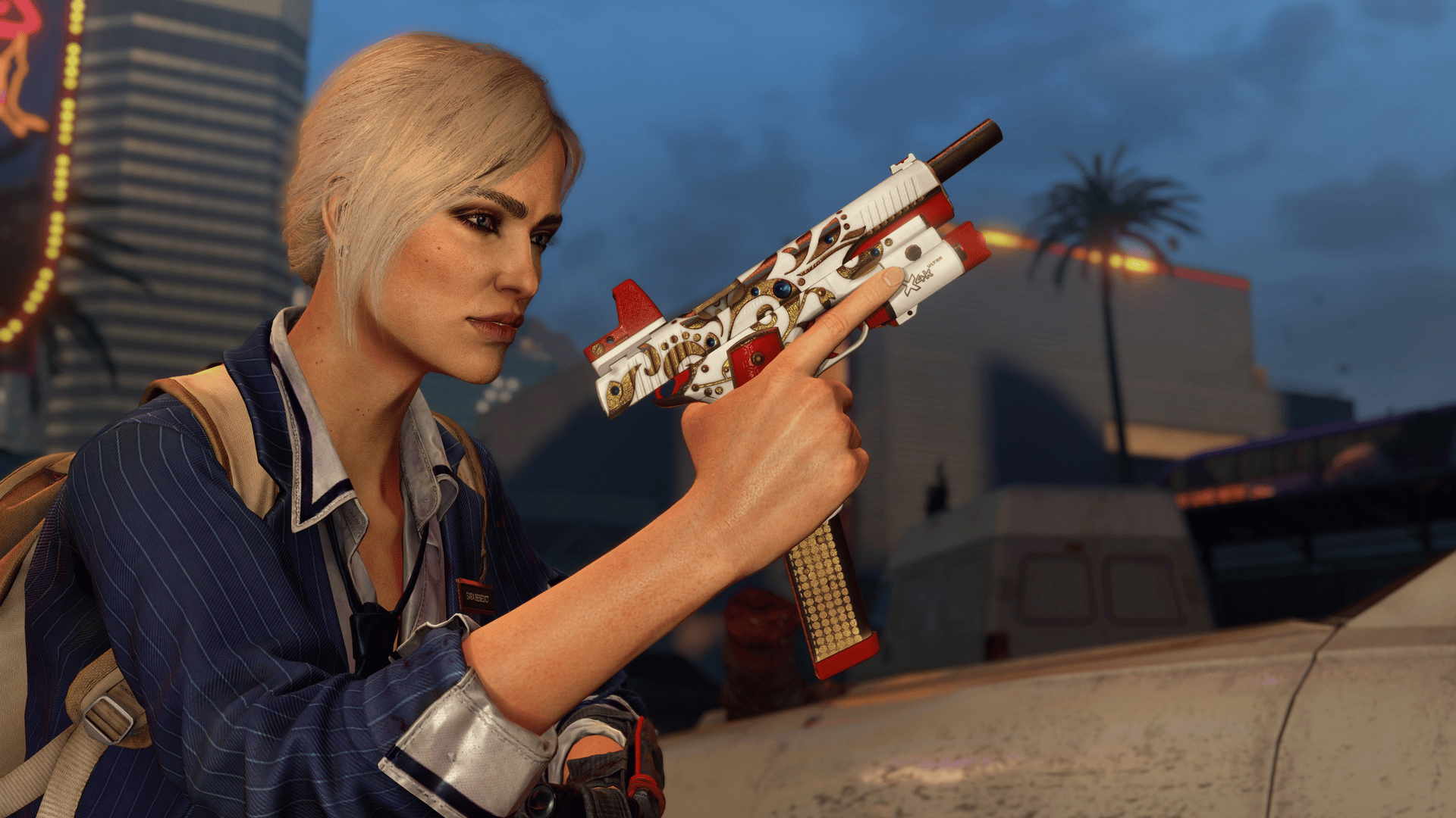 Deck your gear out in pure Sin City fashion with the Vegas skin pack! Featuring a glamorous Vegas outfit for Sara Benedict, along with 4 dazzling weapon skins, one for each weapon: - 1911 Protector Pistol - PAC-15 Sporting Carbine - WASP-180 Defensive SMG - 1877 SBL Repeating Rifle