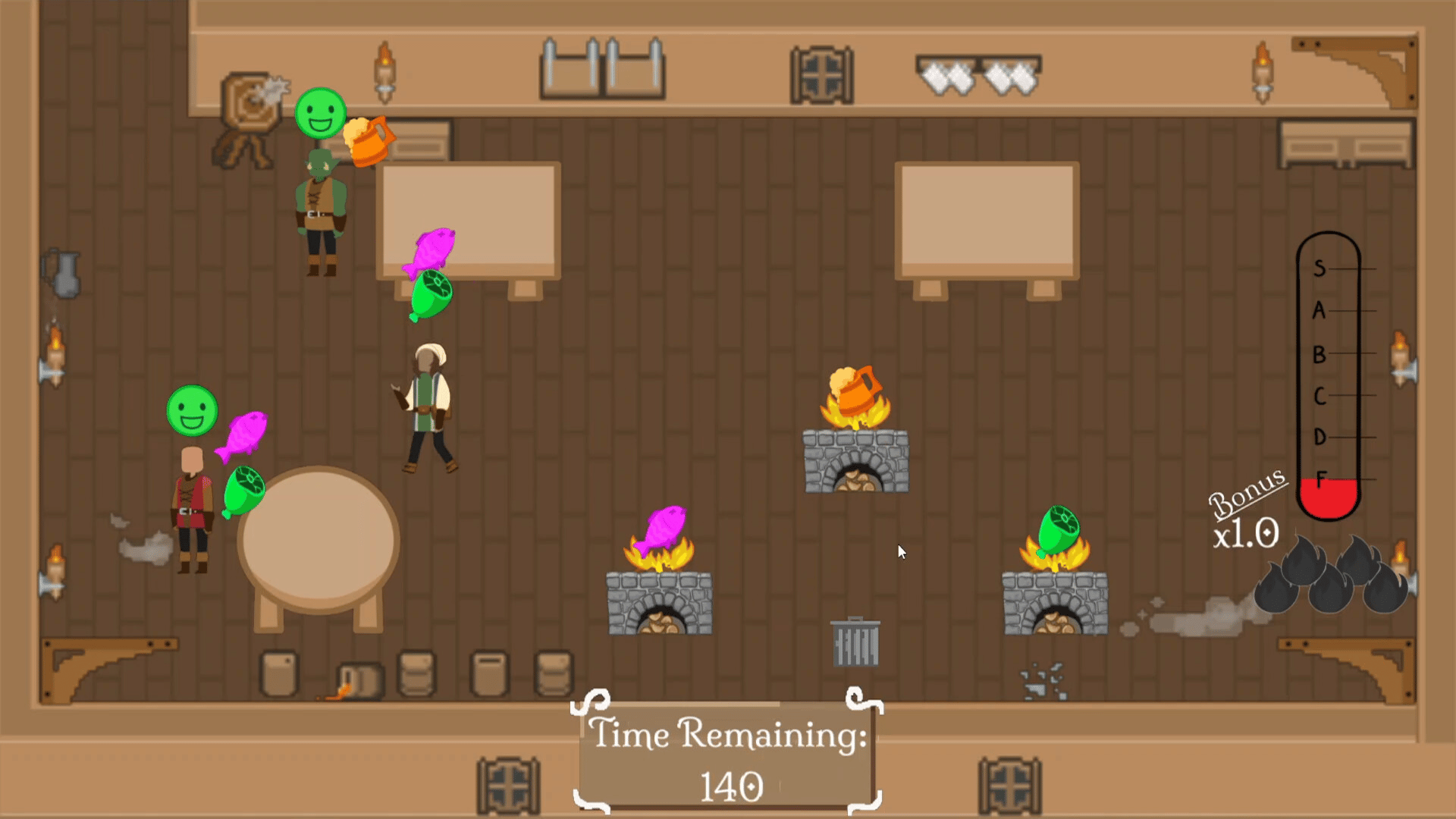 In a world of daunting beasts, brave heroes, and dangerous bandits, someone has to serve up the grub! Become the new owner of The Belligerent Dweller, the most popular tavern in the town of Thurgon. Dash around delivering orders, stacking items, and dodging projectiles that fly your way!