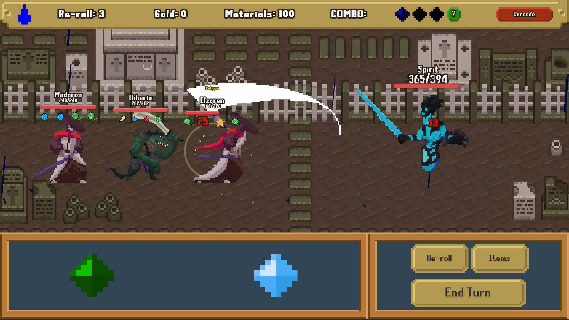 In this turn-based roguelite, each run is unique: characters are randomly generated with different abilities. Combat revolves around three colors of mana: red, blue, and green, creating dynamic strategies. Overcome battles and face the final boss. Master the mana!