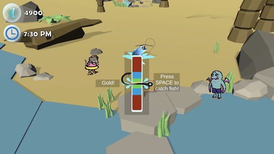 Explore: Wander around Saltbay Cove and develop relationships with kooky and tasty-looking villagers. Earn Money: Fish, Gamble and collect geodes daily in order to earn your keep. Upgrade: Build your sandcastle kingdom from a humble trash-can-sized home.