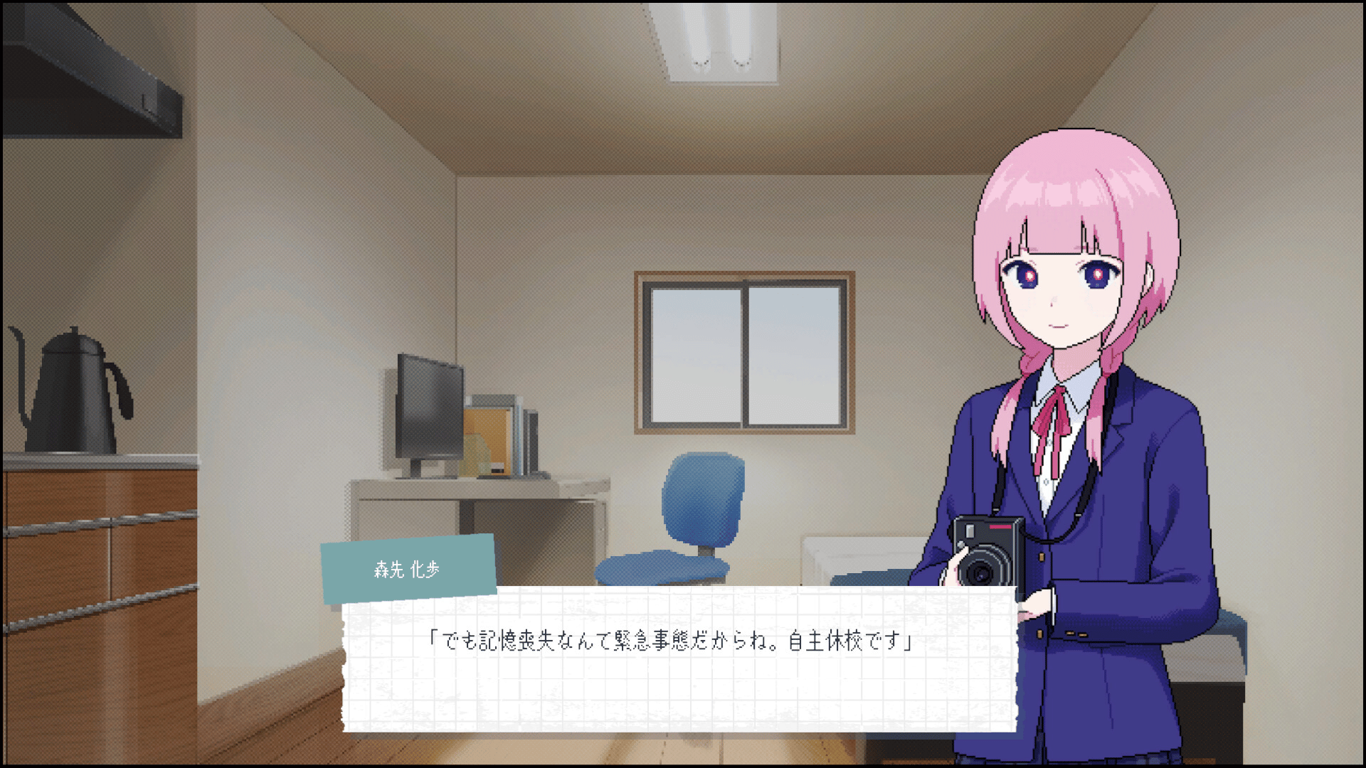 You wake up with amnesia in Kamitsubaki City, a city with a giant tower in its center. There, you meet a girl named Kafu Morisaki, and begin participating at the Kamitsubaki Academy Newspaper Club at her invitation.