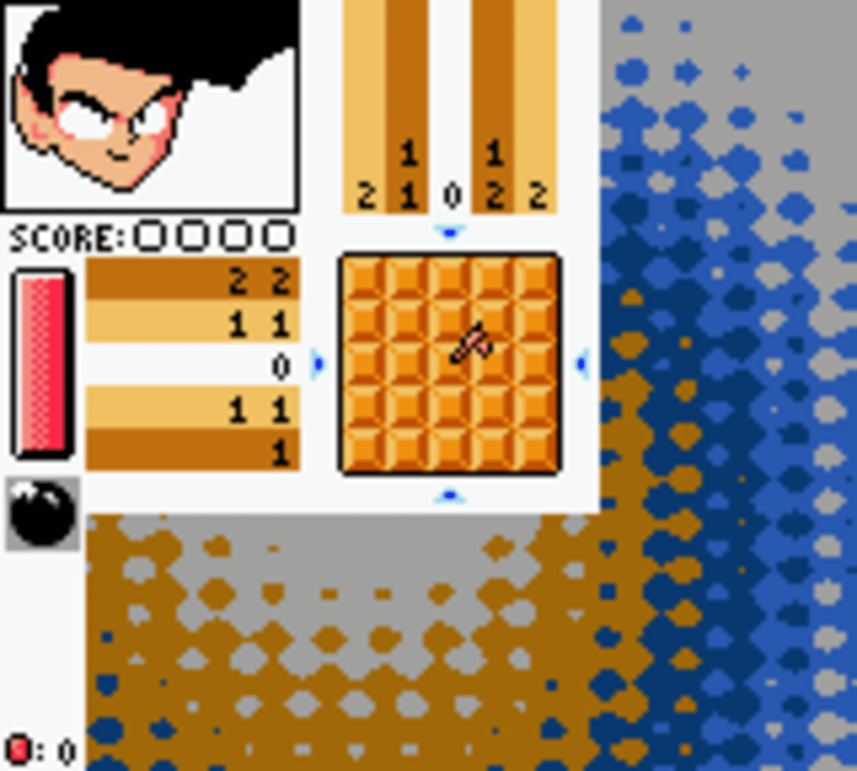 Drymouth is a homebrew puzzle game for the game boy color. What you do is follow the numbers above and to the left of the field to see which blocks you should punch out. When all the blocks are correctly punched out, the pattern will form a picture.