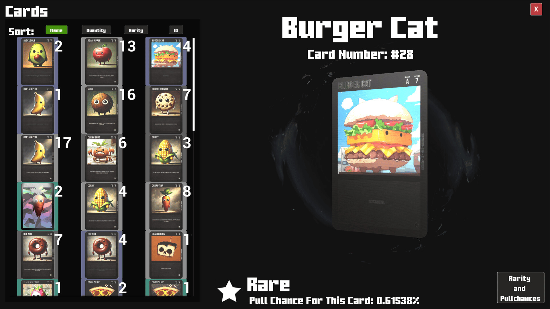 Collect, trade, and explore a world of food-themed fun! "Snackdown" is a lighthearted collectible card game featuring over 60 unique cards, ready for trading and showcasing. Perfect for casual players and collectors alike!