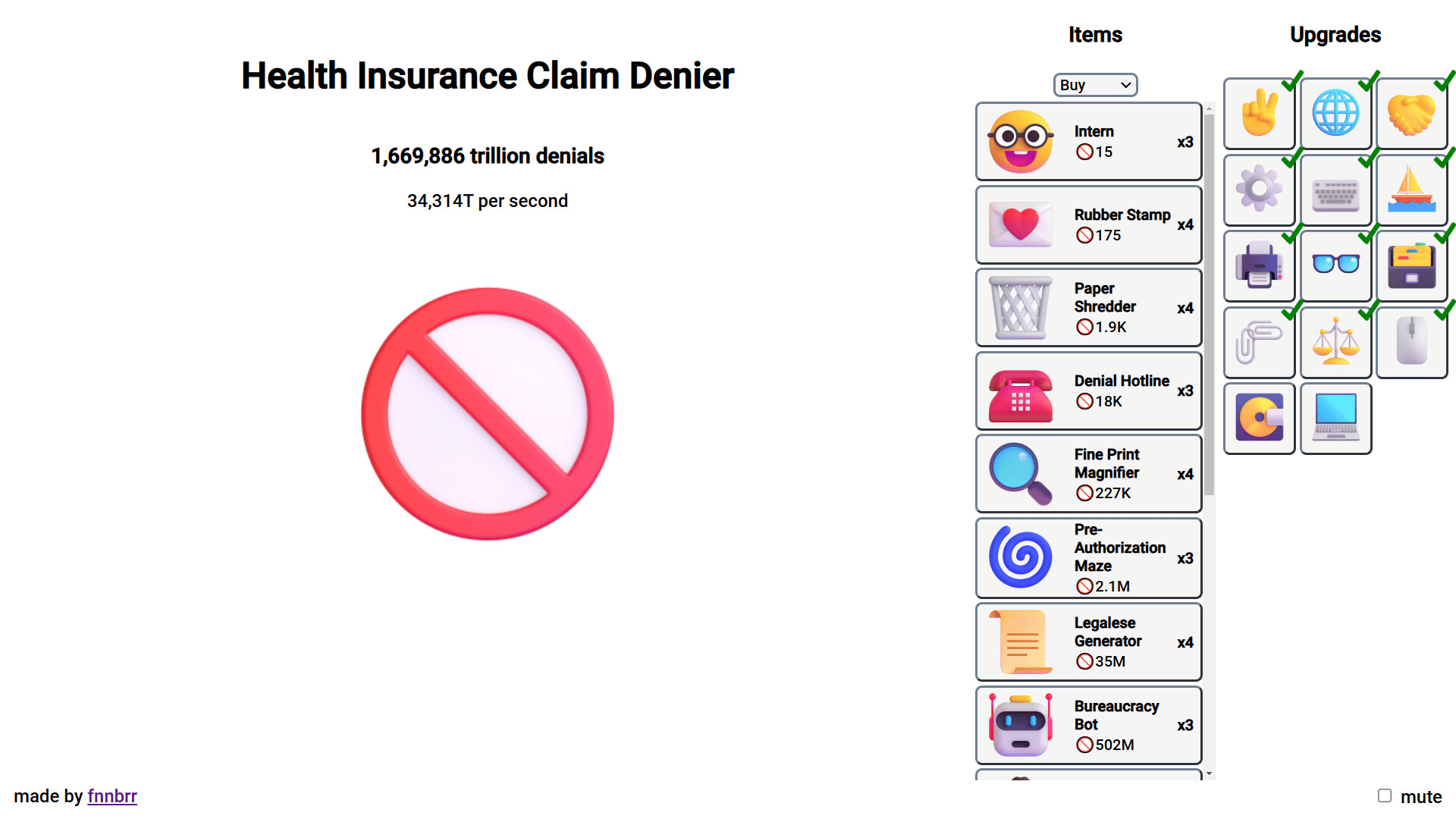 An incremental game about denying health insurance claims.