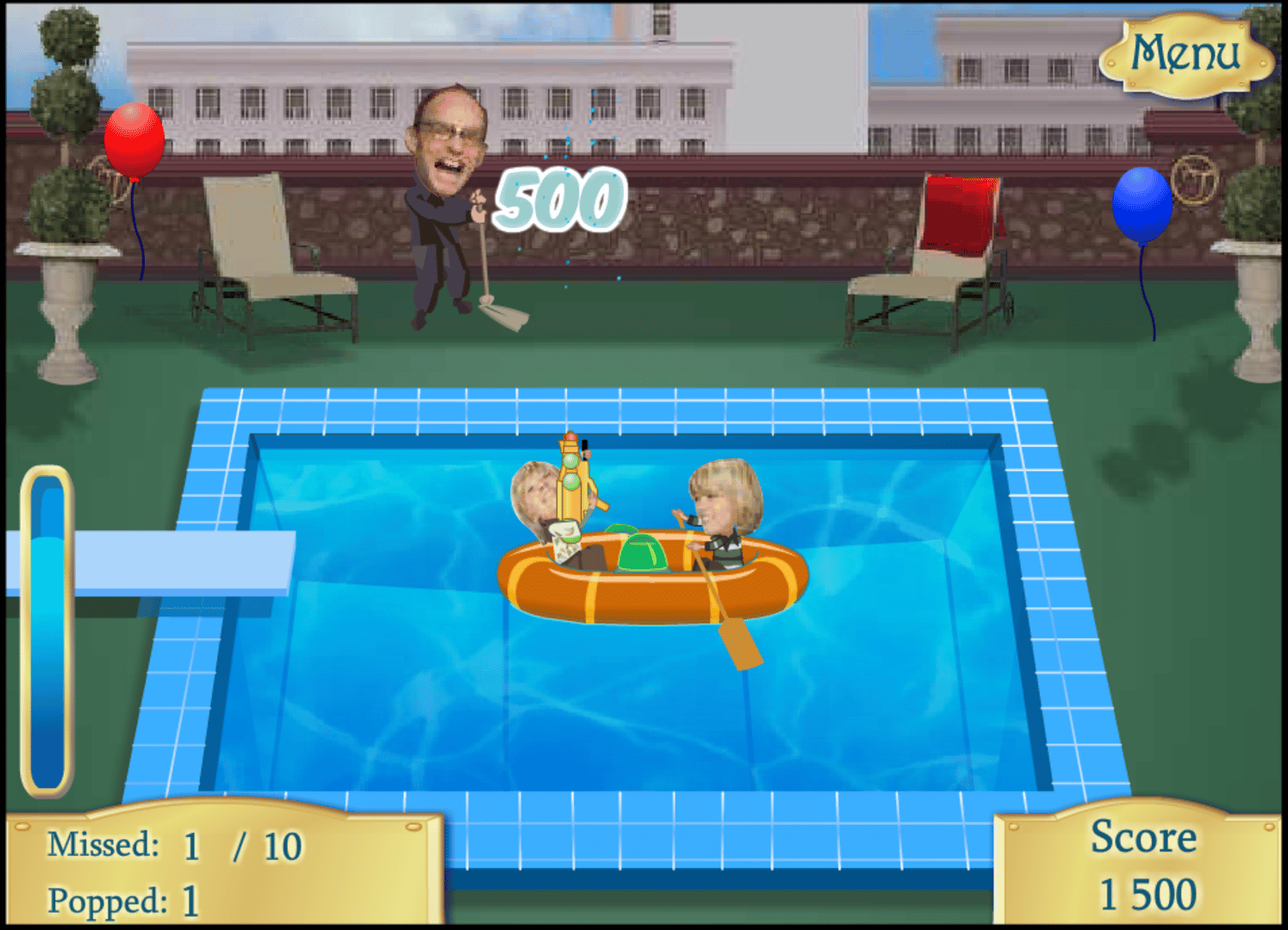 Use your arrow keys to balance the tower from the first level and for the other levels. Zack and Cody are at the pool and because they got bored they decided to play some funny games that will also get them points. Help Zack and Cody get through every level of the game without their mother seeing them and without getting punished.
