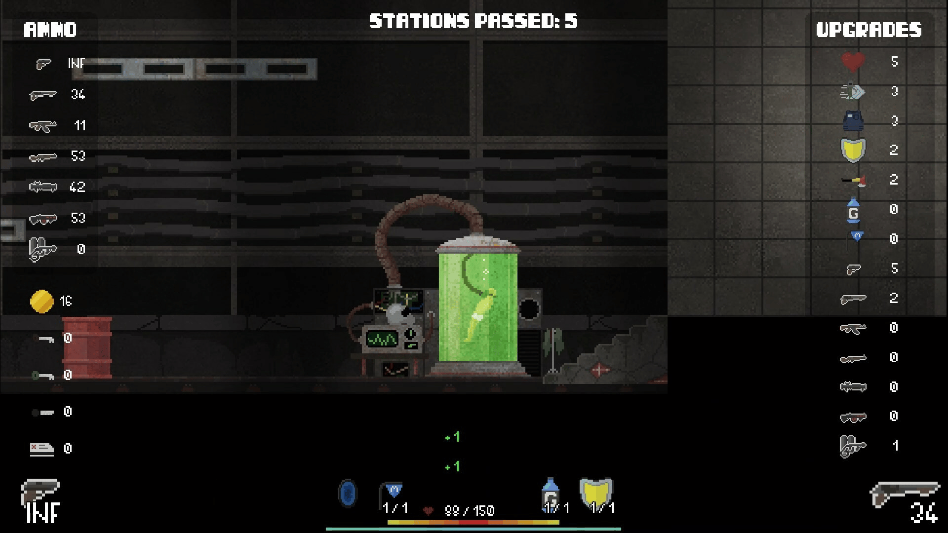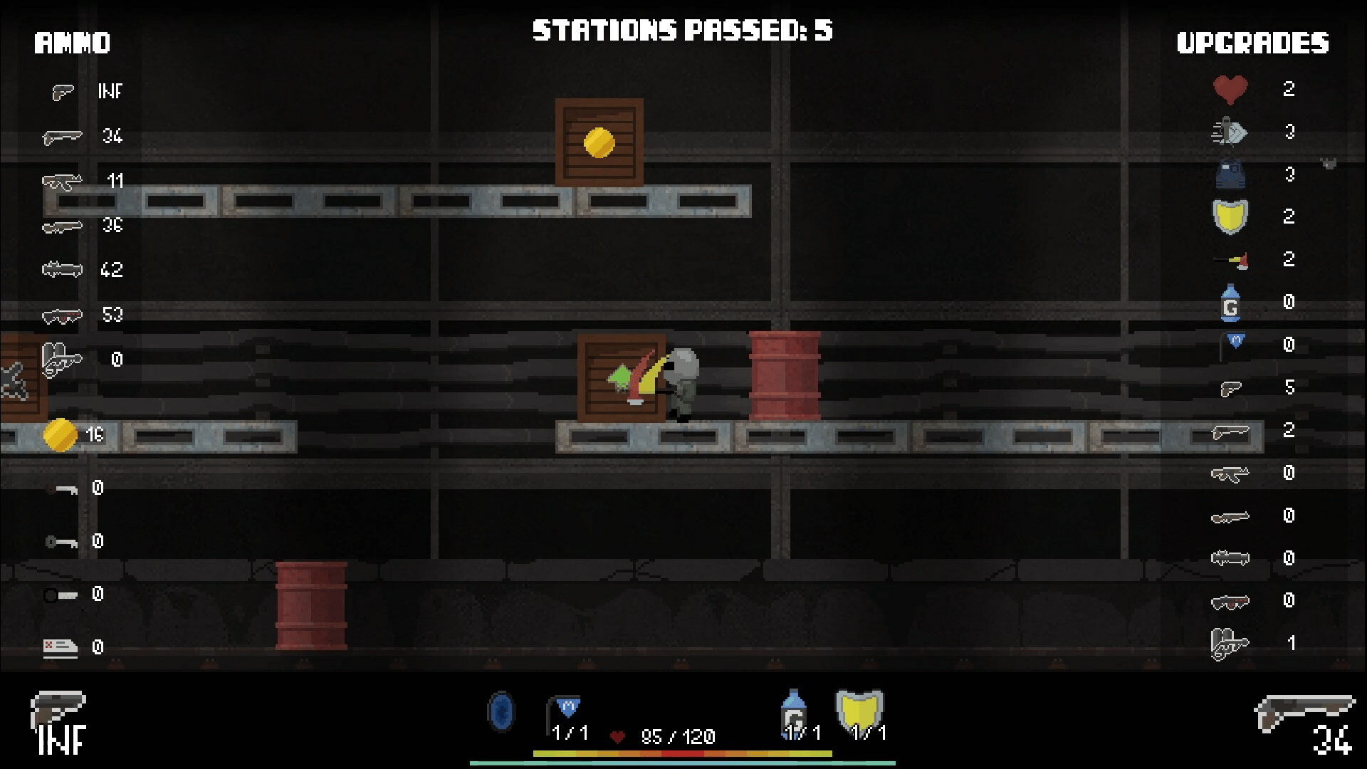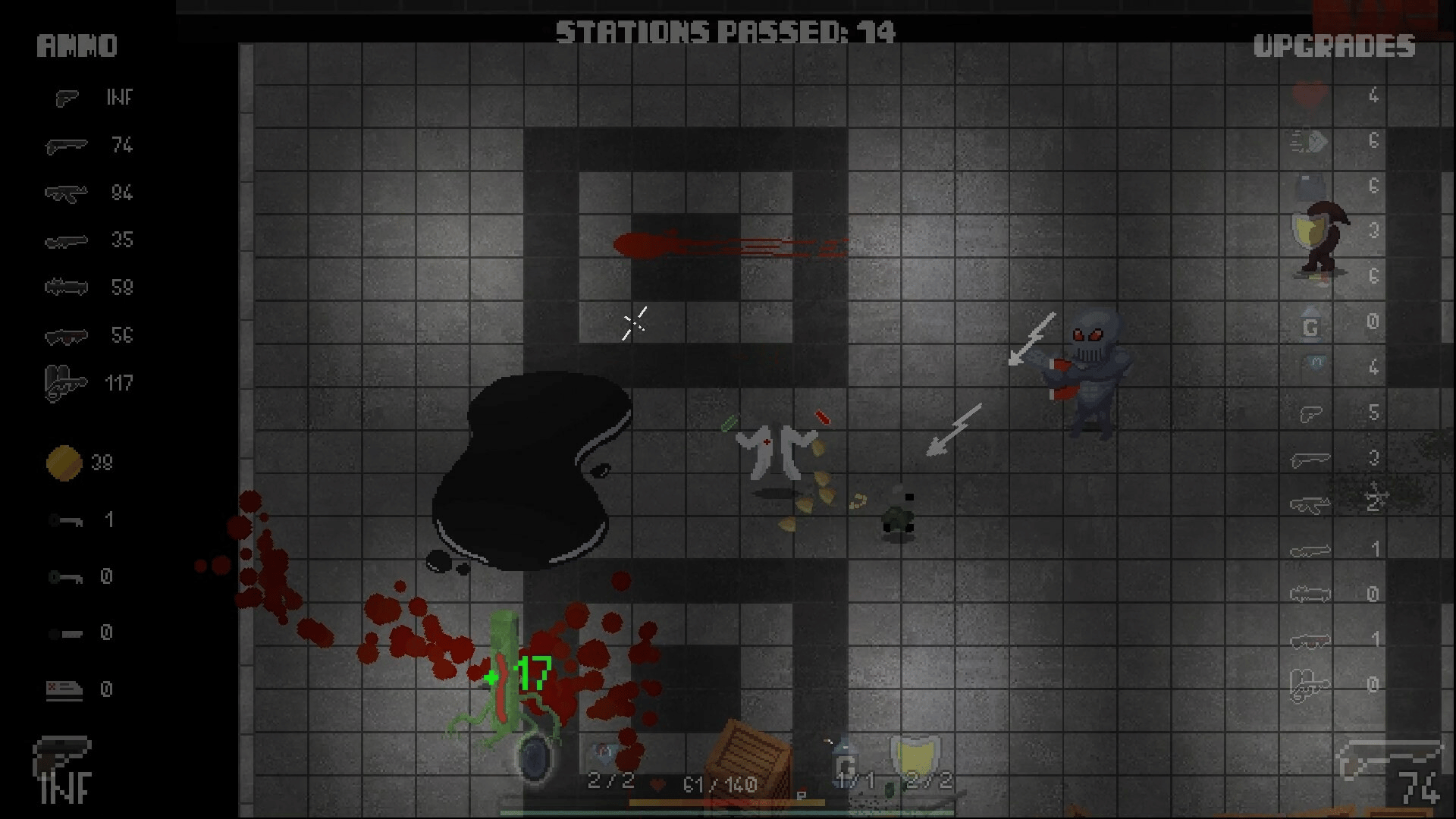 Loot post-apocalyptic metro tunnels in side-scrolling mode and survive waves of monsters at stations in top-down twin-stick shooter mode. Upgrade your skills and weapons endlessly. How far will you get?