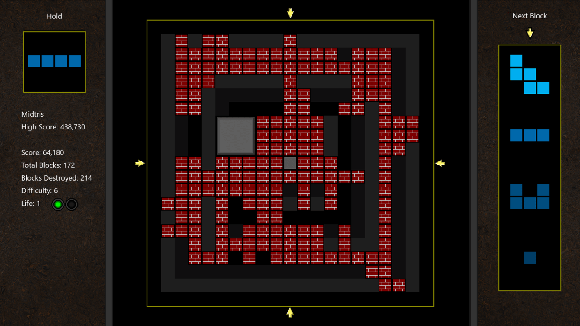 Midtris is mind bending puzzle game where your goal is to place blocks around the center piece and clear layers of perfect squares.