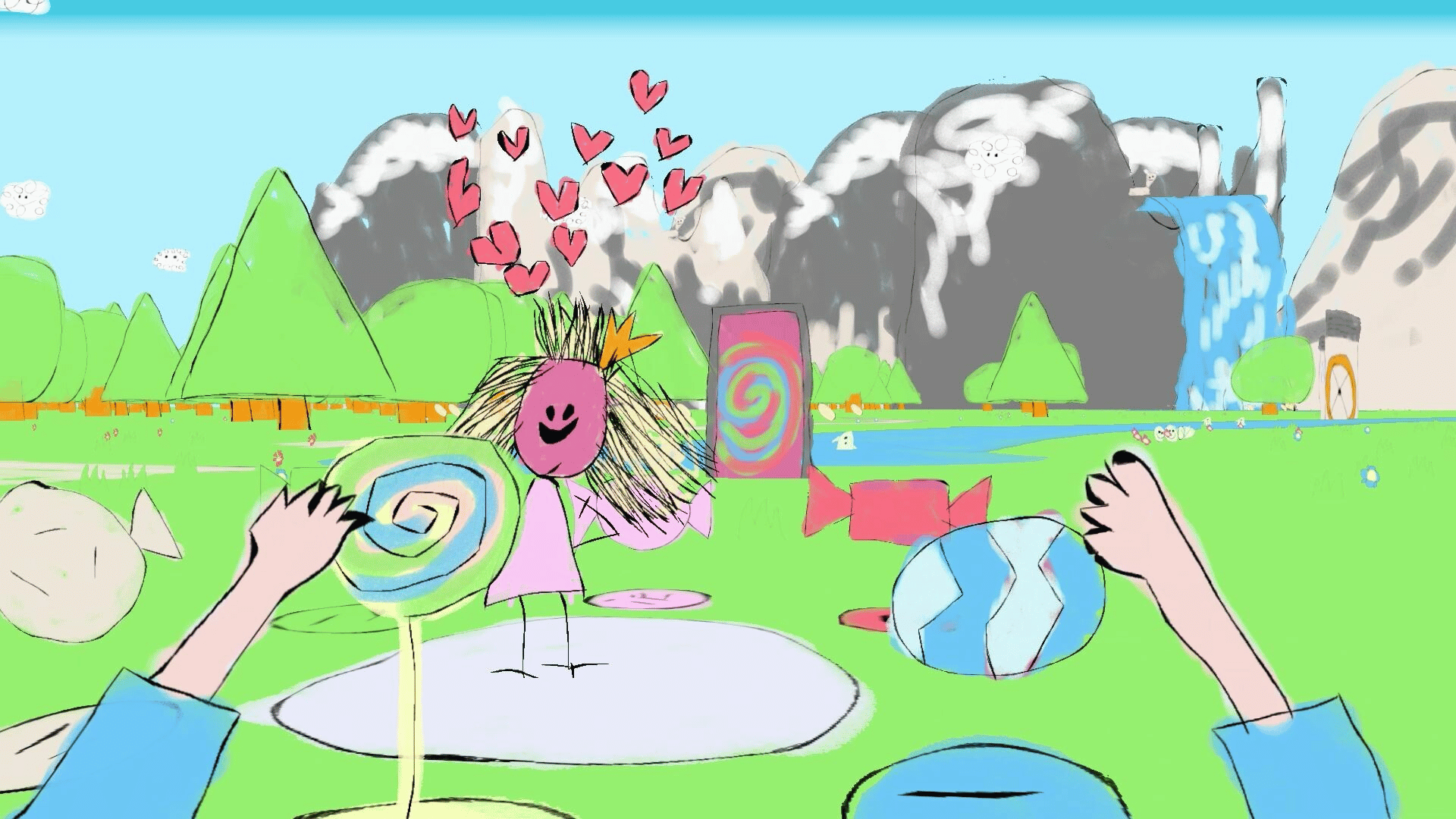 An open-world exploration game made from my 4-year-old daughter's drawings. Step into a vibrant, hand-drawn world and help the princess find all her magical candies.