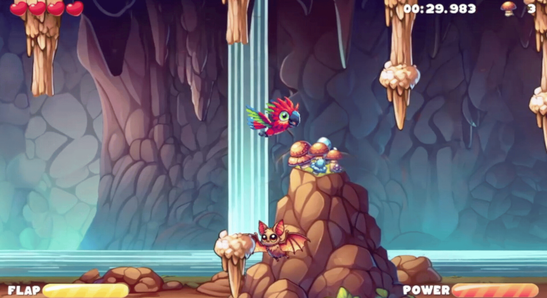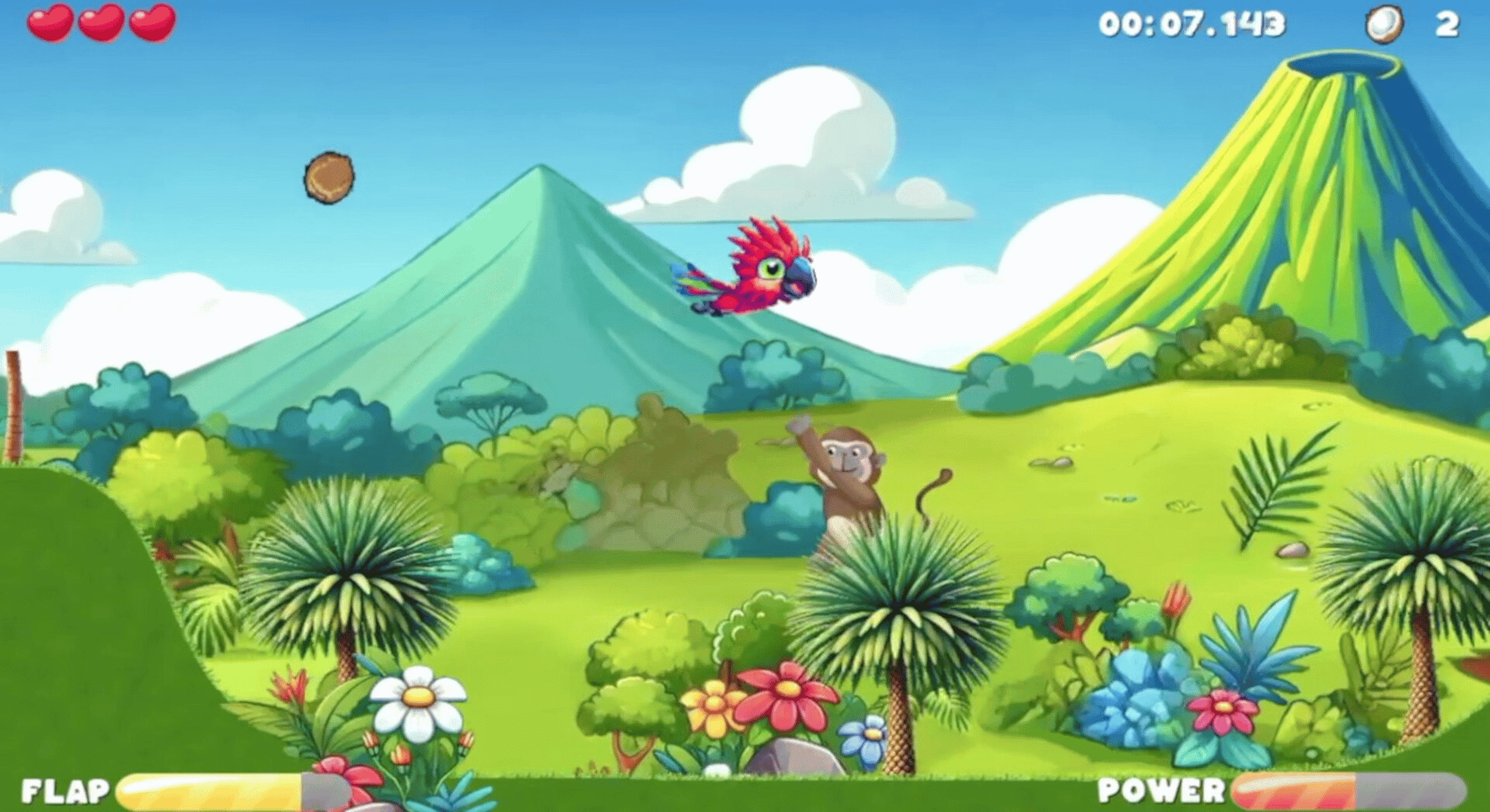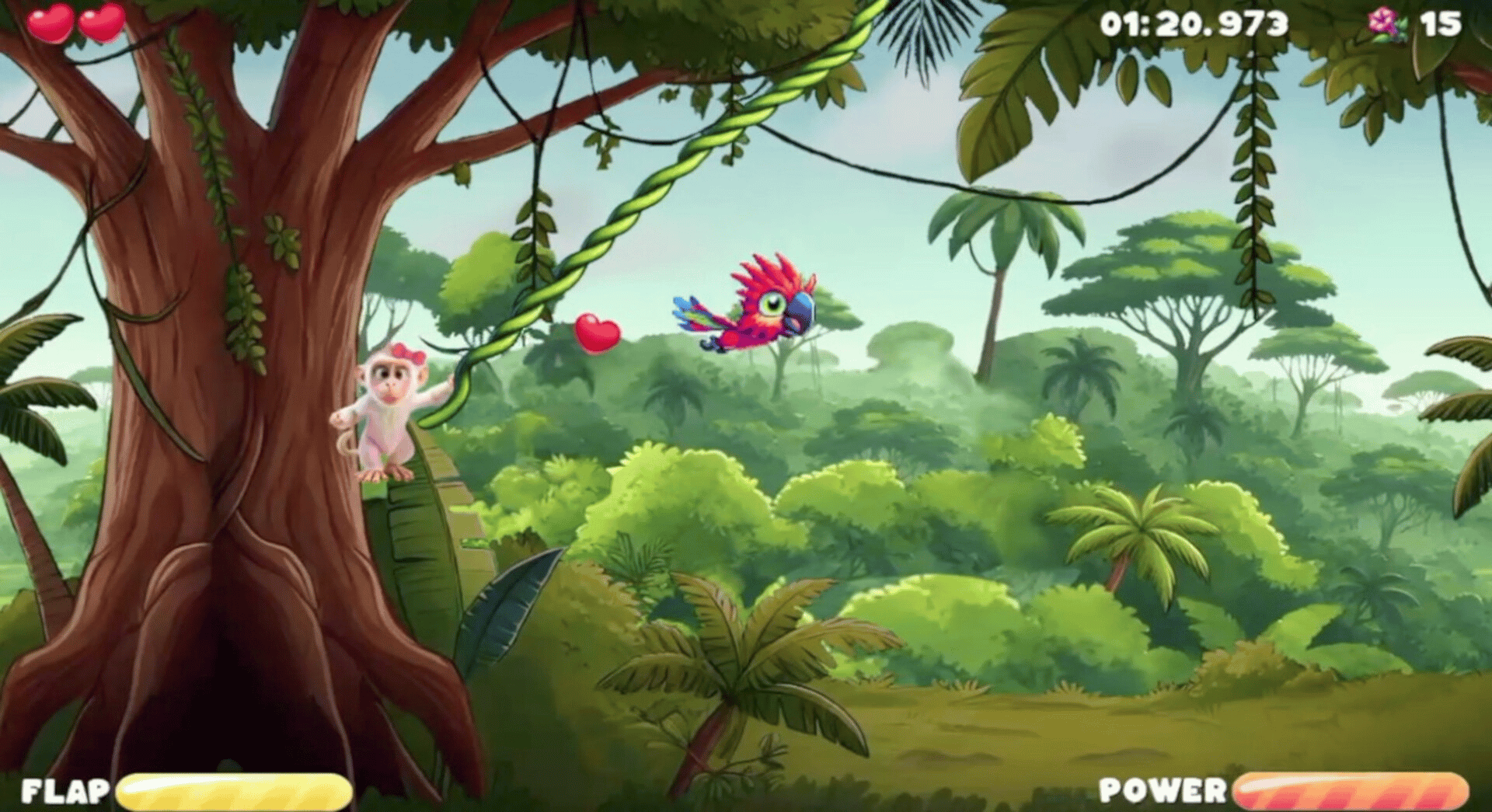 A relaxing and happy experience flying through colourful regions, avoiding obstacles and collecting exotic food!