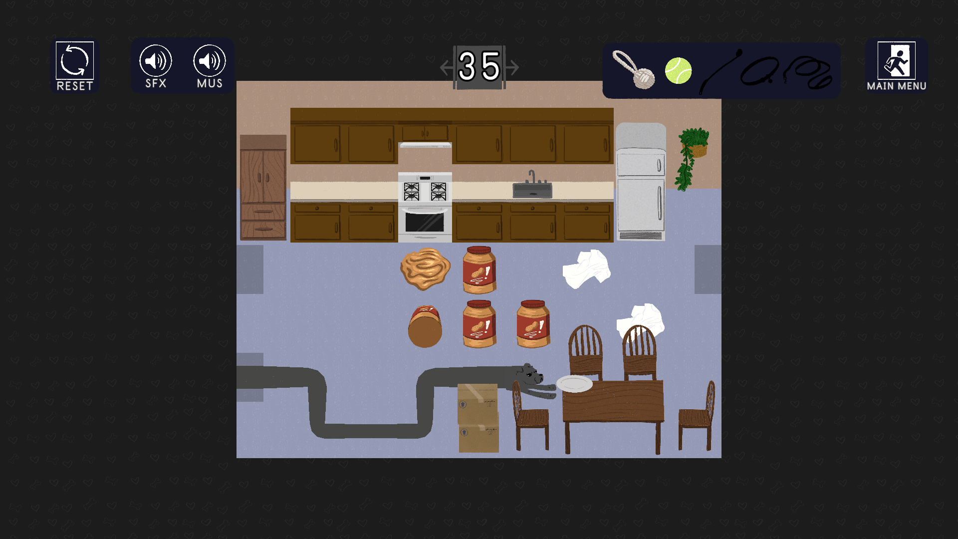 Ooohh, Big Stretch!!! is a block-pushing puzzle game with a few extra twists! Start your morning stretch (and never stop) as you collect treats and toys, growing ever longer and spreading through more and more of the house. Watch out for messes! If you don’t clean up, you’ll spread them everywhere! Sticky-tricky puzzles stand between you and everything you need for your trip to the park. Stretch your way to walkies!