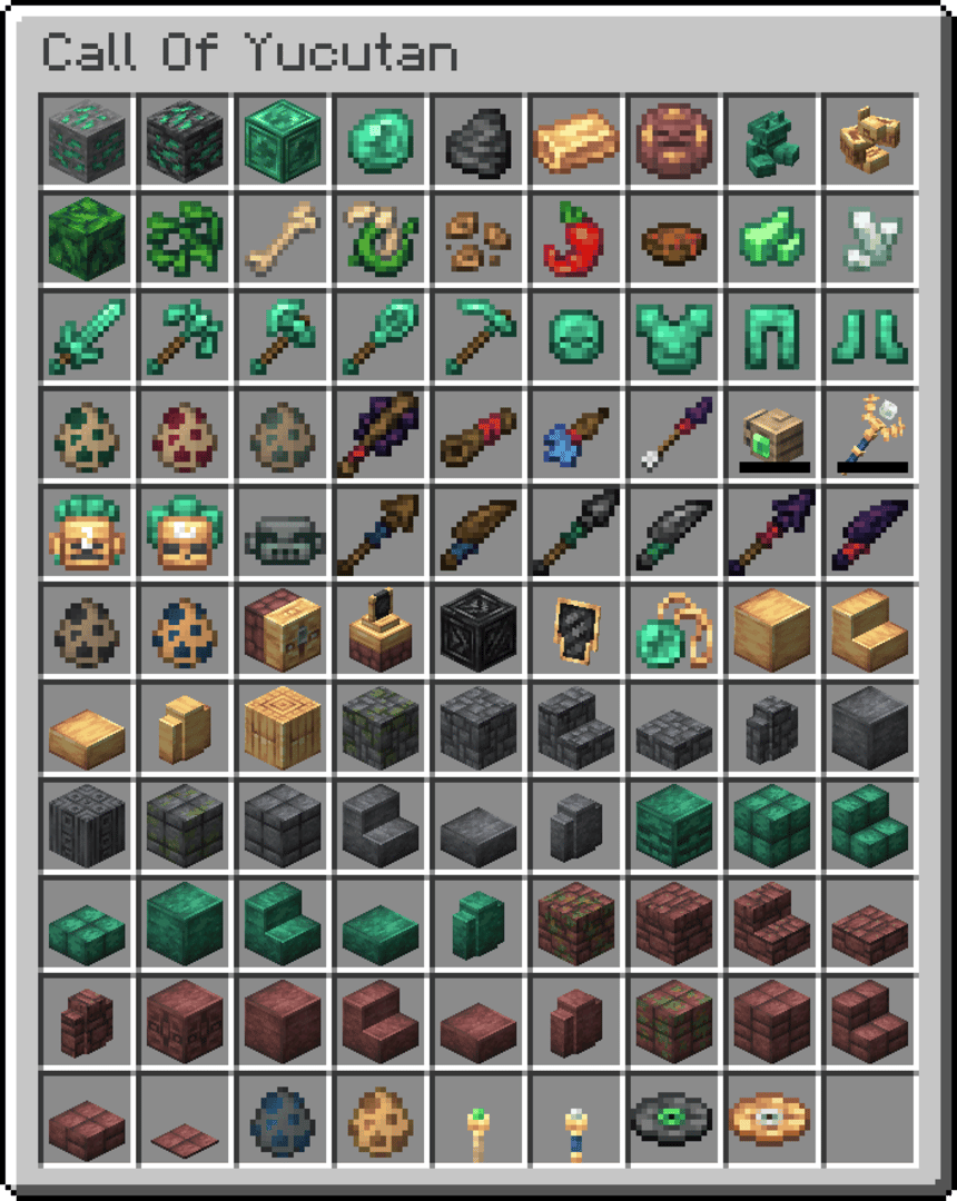 Call of Yucatan is a mod that adds 2 dungeons appearing in the jungles. These dungeons reference Maya and Aztec mythology and culture. Puzzles, traps, monsters, and gods like Kukulkan await you. The mod features numerous construction blocks, ruthless mystical fauna, and resources that will allow you to craft advanced equipment useful in your survival