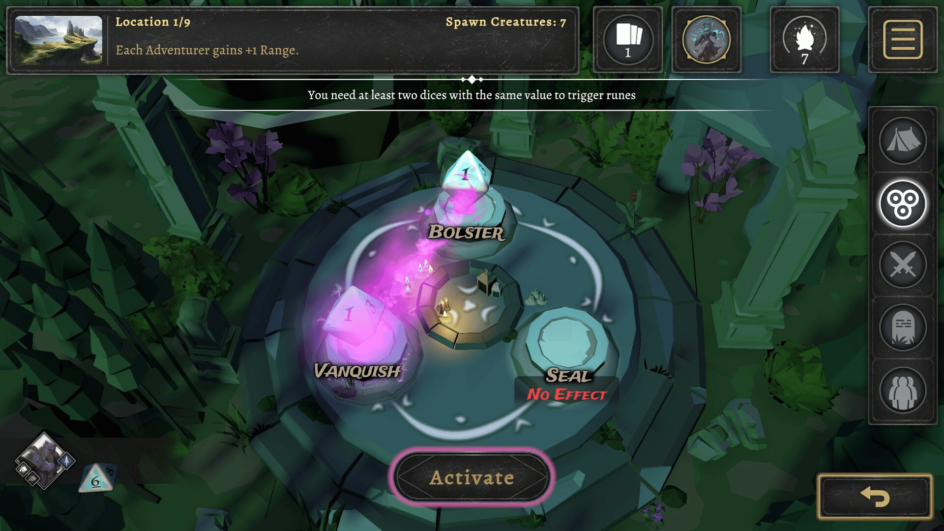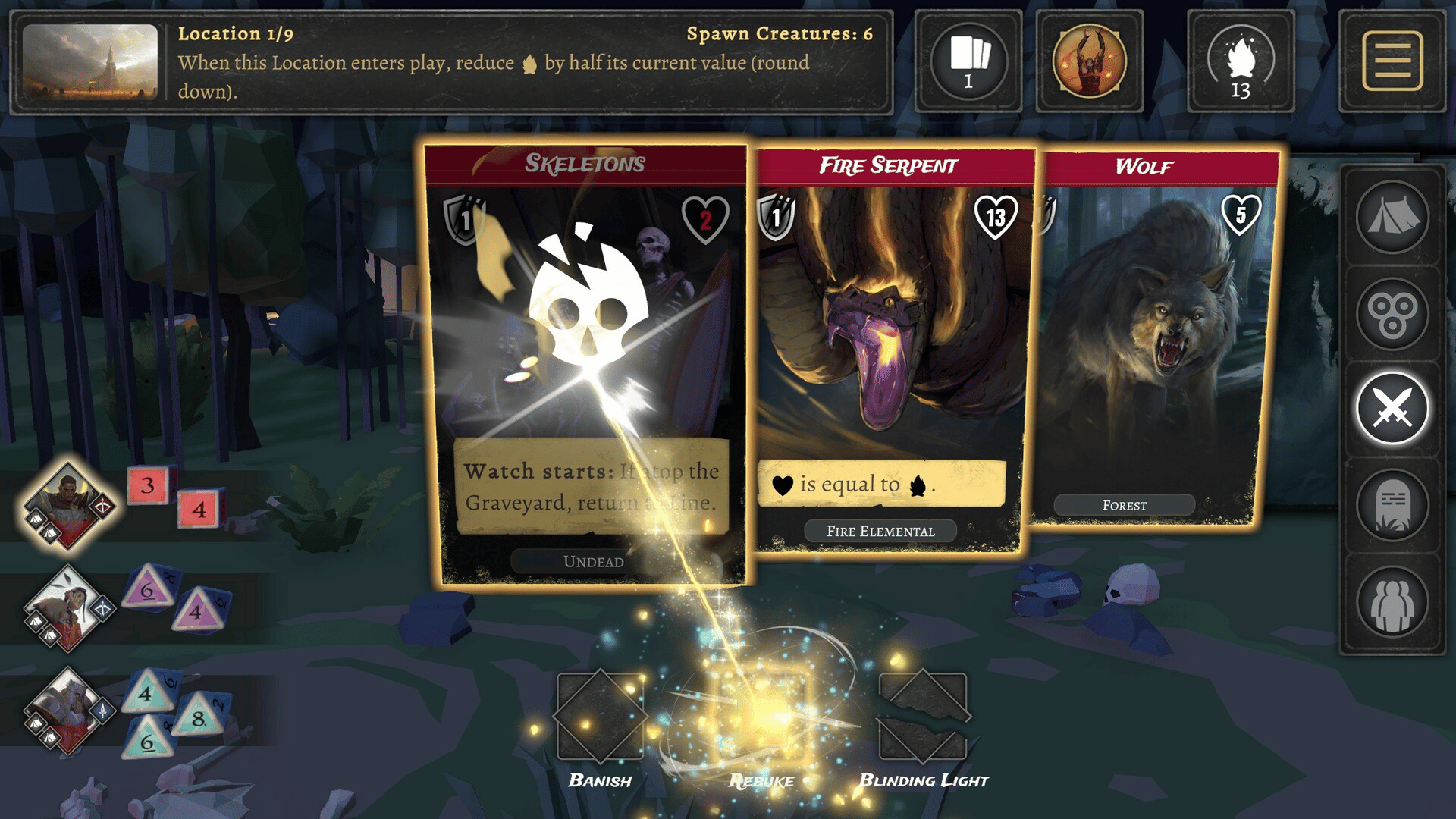 Assemble your party to survive in this dice-management game! Master steel and magic: roll dice and next use them to attack directly or for powerful abilities. Scout, light a fire, use ancient runes or equip perks to prepare before battle. Use tactics to fight monsters and Unhallowed. Set a watch!