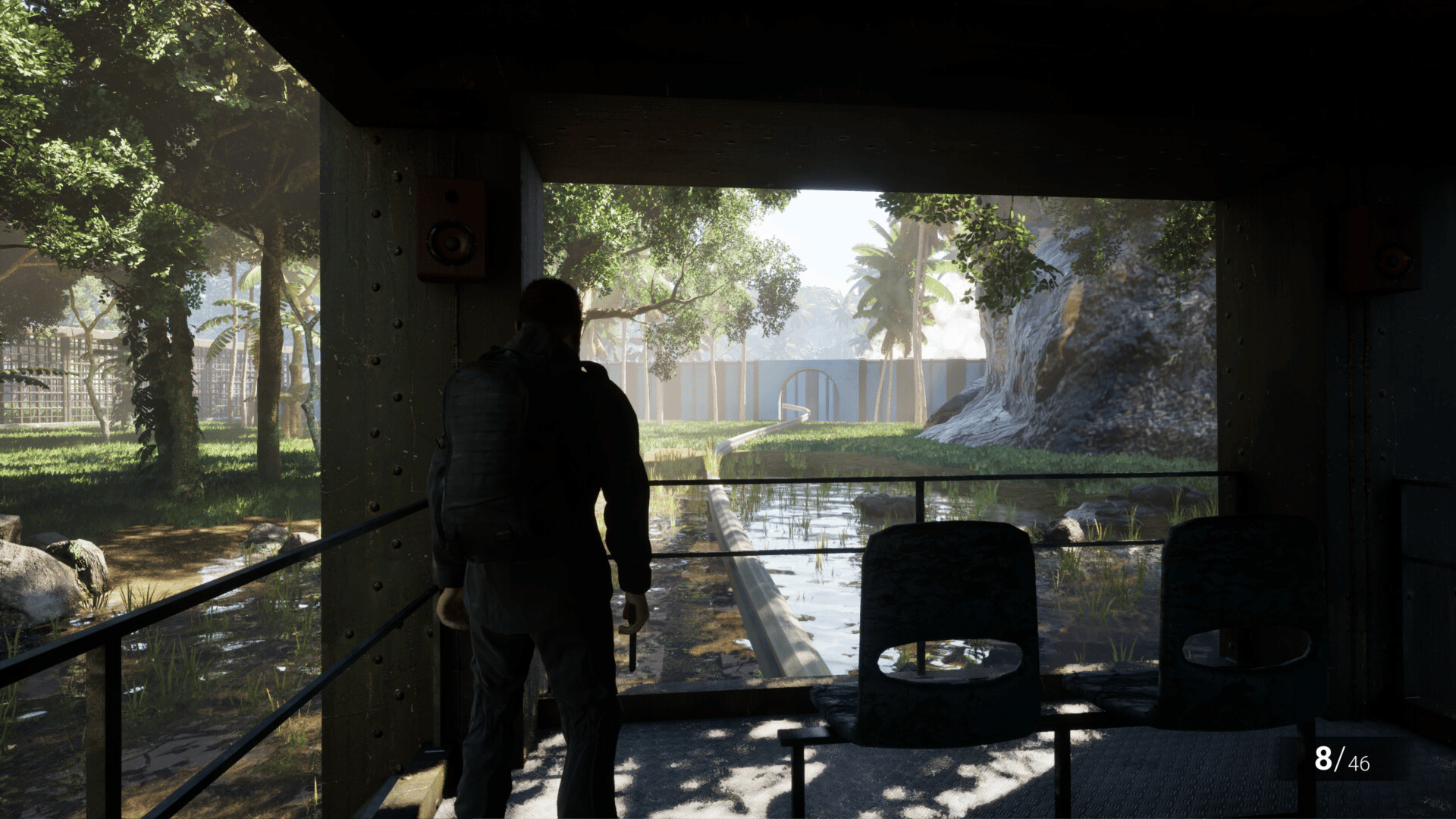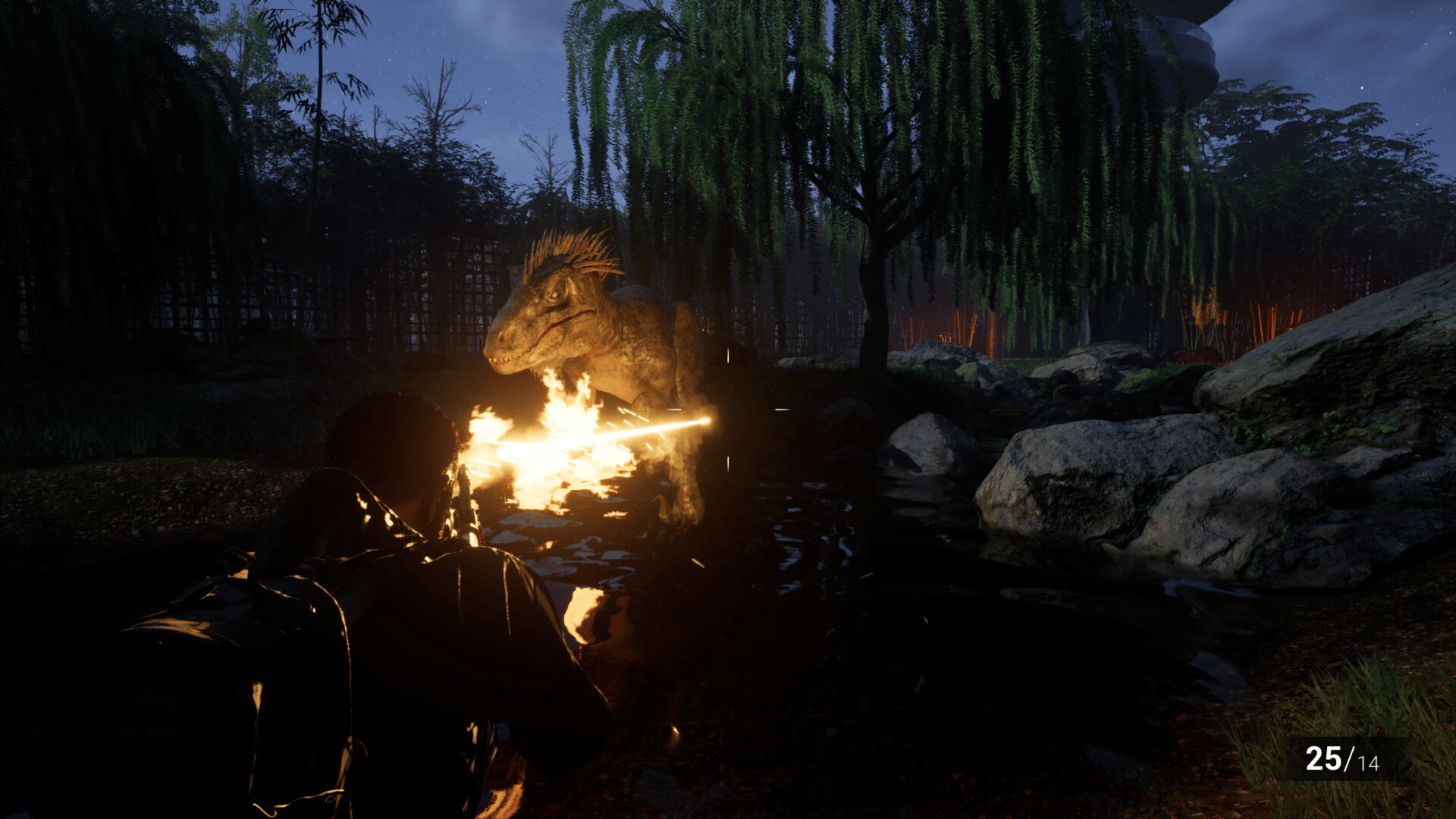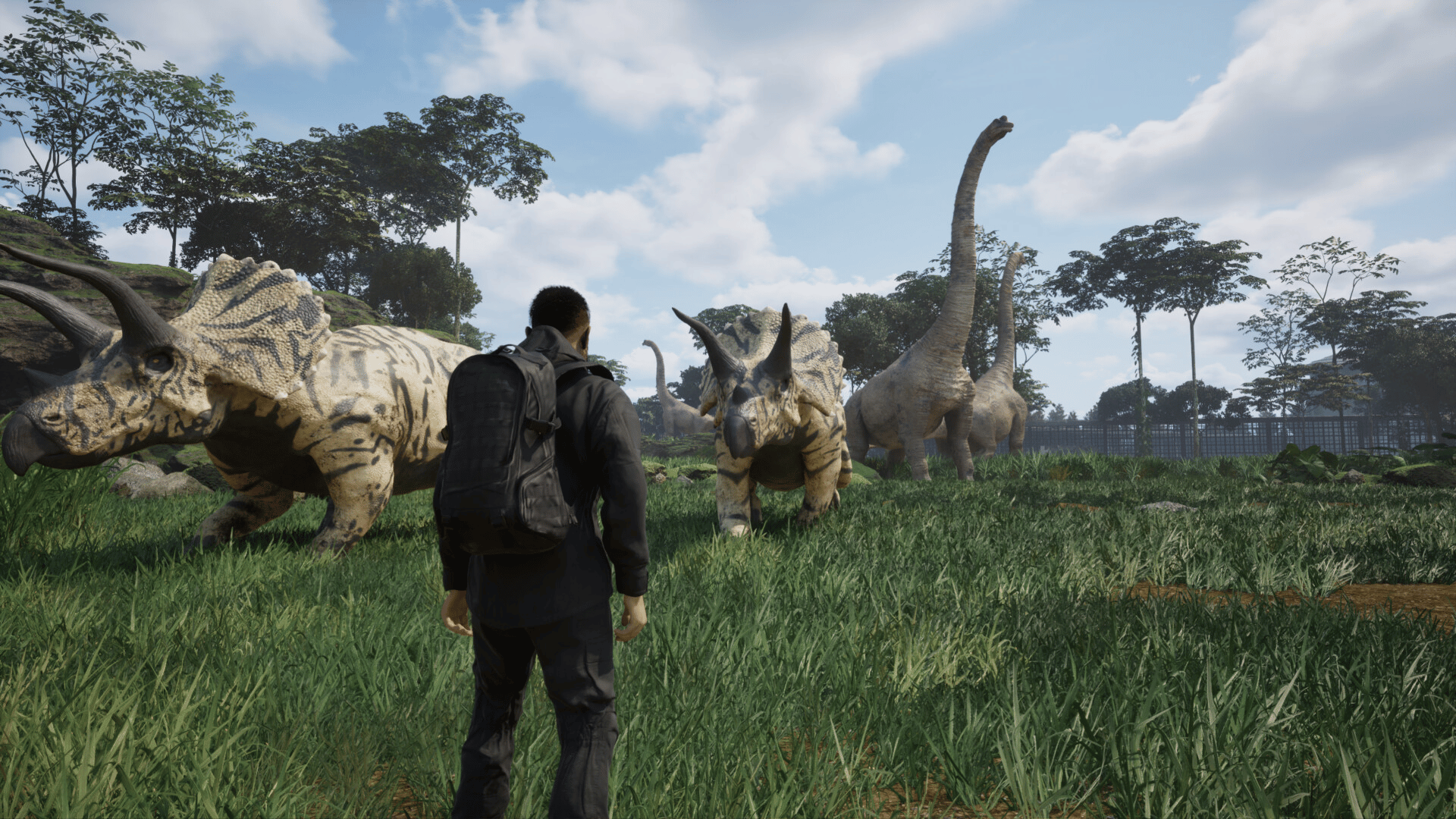 Embark on a covert mission to the dinosaur theme park Prehistoria, where you must explore the park's grounds to scavenge resources, solve puzzles, and fight your way through diverse biomes, underground tunnels and deadly enclosures. But beware, you are not the apex predator here.